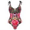 | Qiaojiayuan 2025 nuevo conjunto de traje de baño de una pieza de mezclilla de alta elasticidad con estampado transfronterizo europeo y americano para mujer para cubrir el vientre y mostrar un traje de baño delgado |