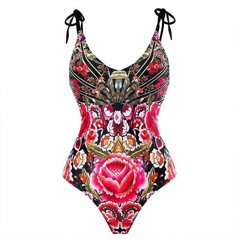 | Traje de baño de una pieza con estampado europeo y americano nuevo de 2025, traje de baño de moda para mujer, traje de baño con falda de gasa, traje de baño de venta caliente, estilo popular |