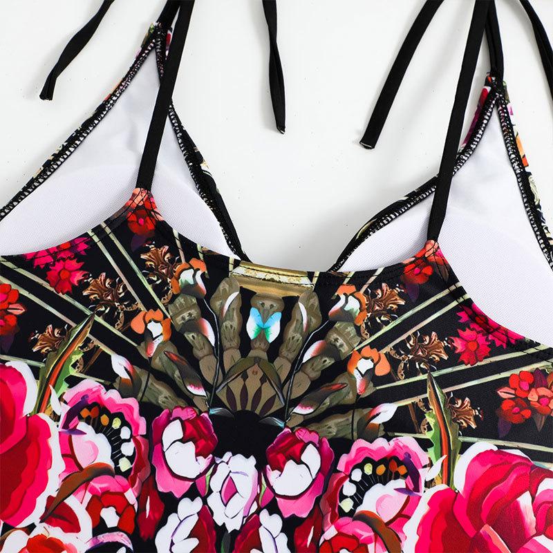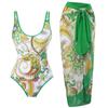 | Traje de baño de una pieza sexy europeo y americano de 2025, con estampado a juego de colores, falda de poliéster de dos piezas, muy vendido, estilo atractivo |