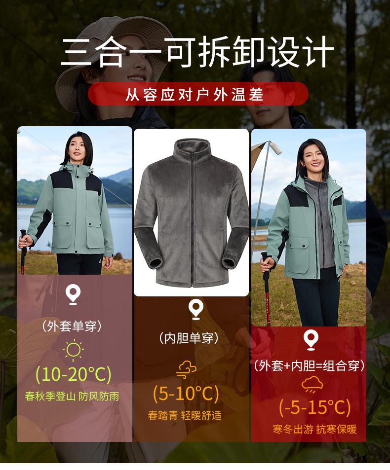 2025 Nuevo Estilo Chaqueta Tres en Uno para Ciclismo al Aire Libre para Mujer y Hombre, Impermeable y Cortavientos, Ropa de Montañismo, Cortavientos y Cálida