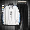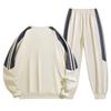 Traje Casual de Otoño e Invierno para Hombre con Logo Personalizado, Sudadera Holgada de Cuello Redondo, Pantalón de Chándal a Rayas de Moda para Hombre, Verde