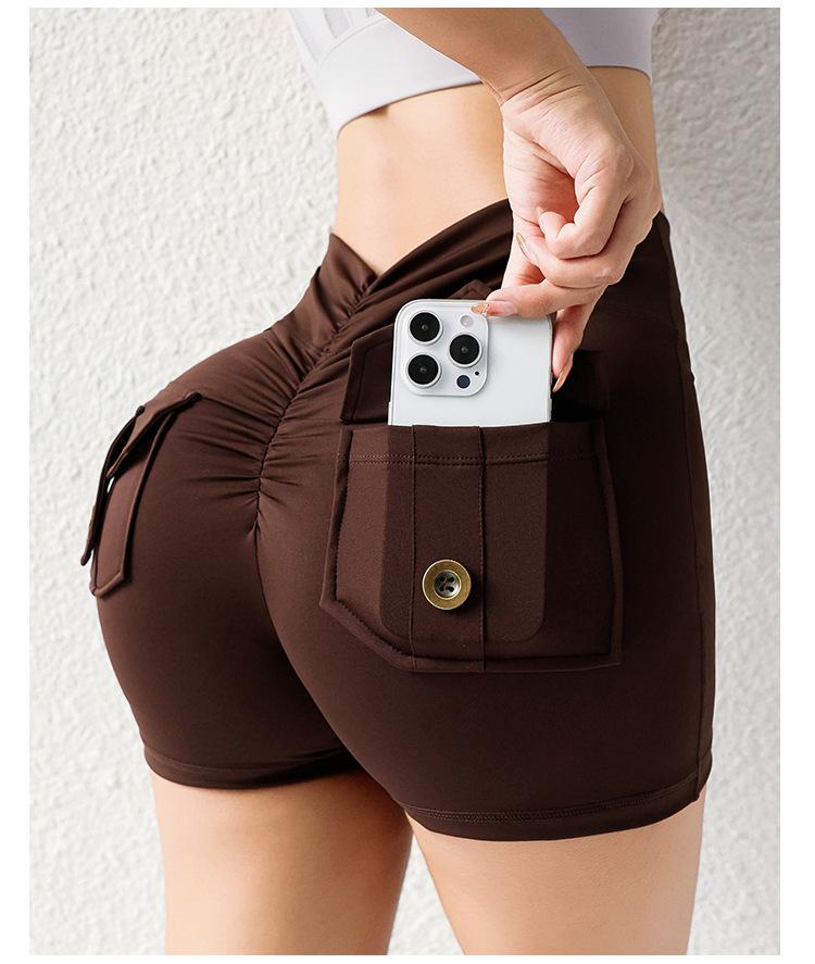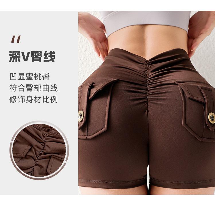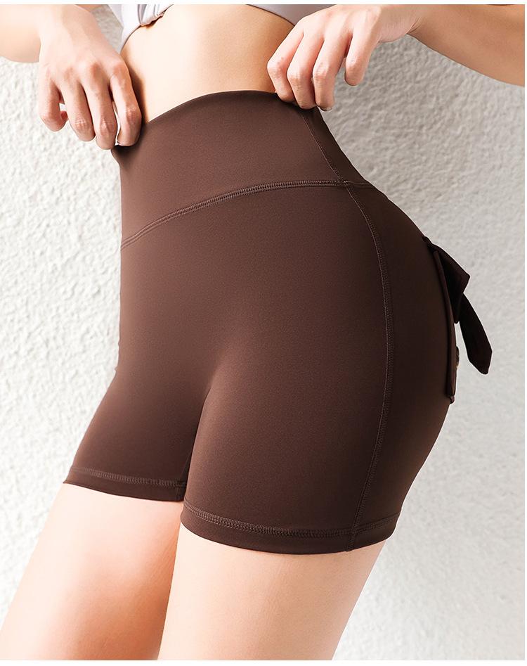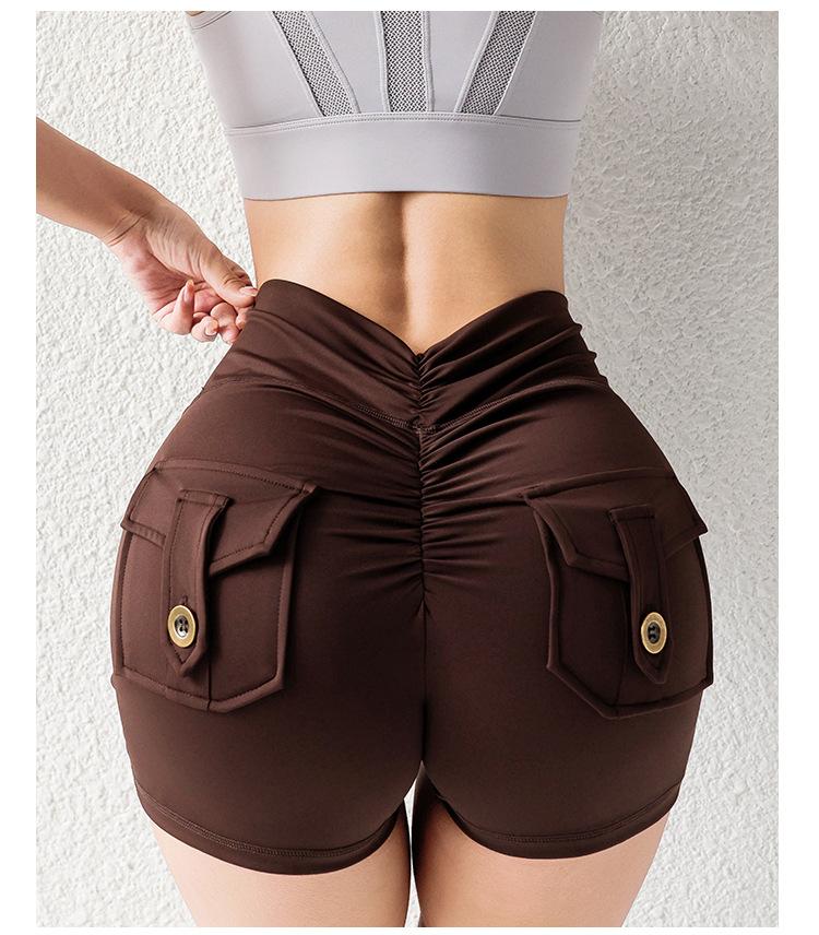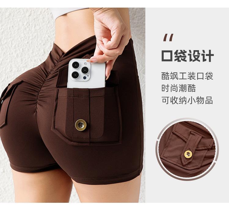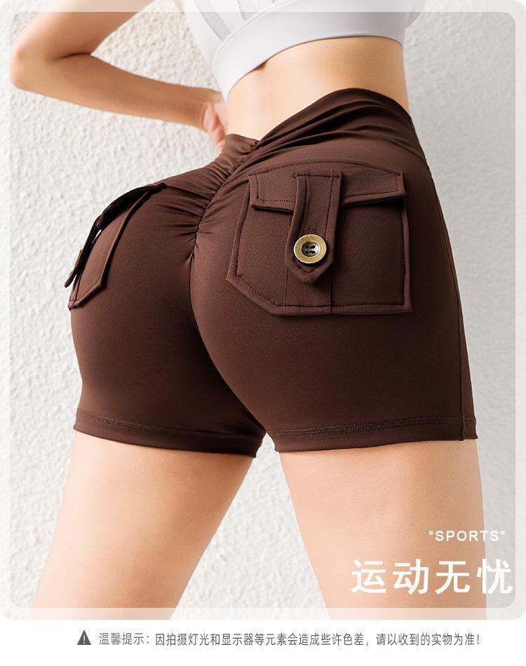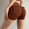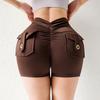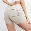 Pantalones de Tres Puntos Fitness Melocotón Nude para Mujer con Bolsillo Cintura Alta Levanta Caderas Ajustados Shorts Deportivos de Secado Rápido para Correr Yoga
