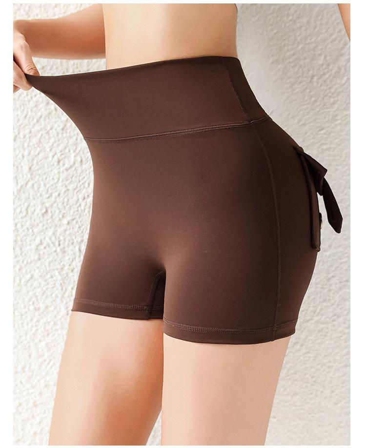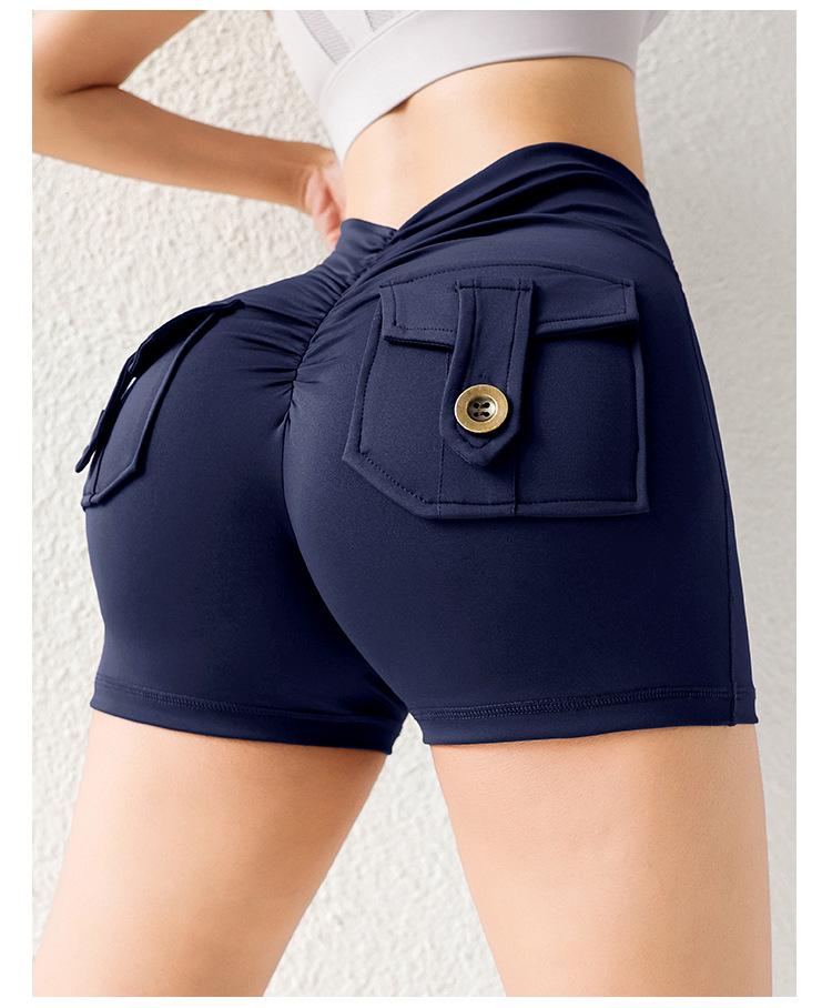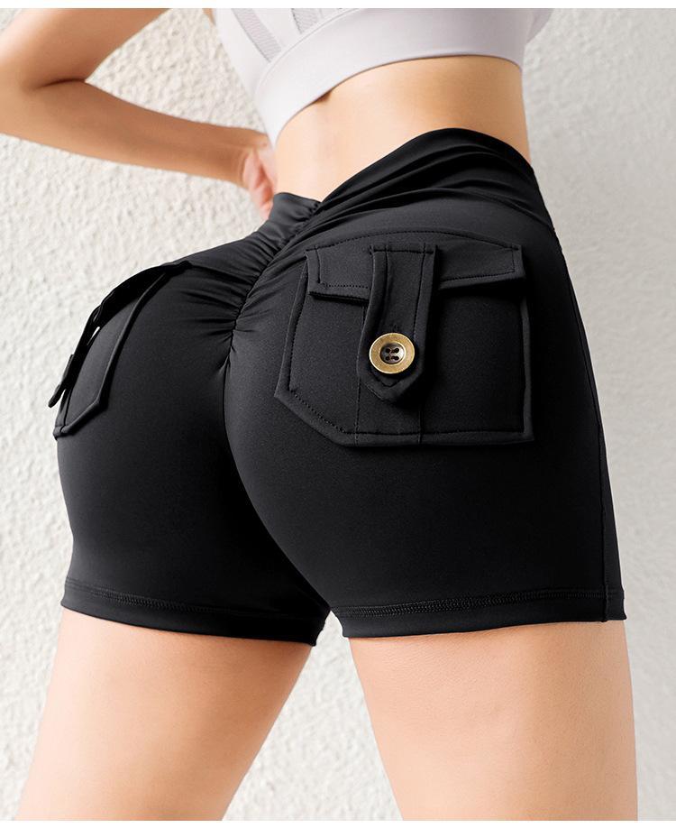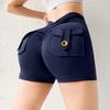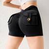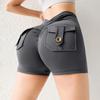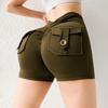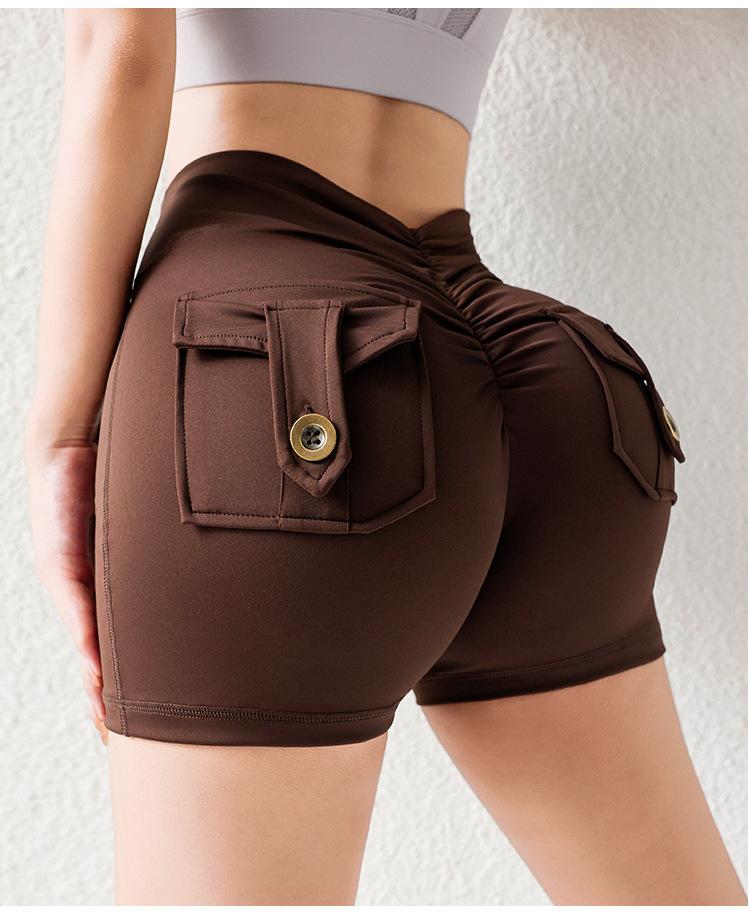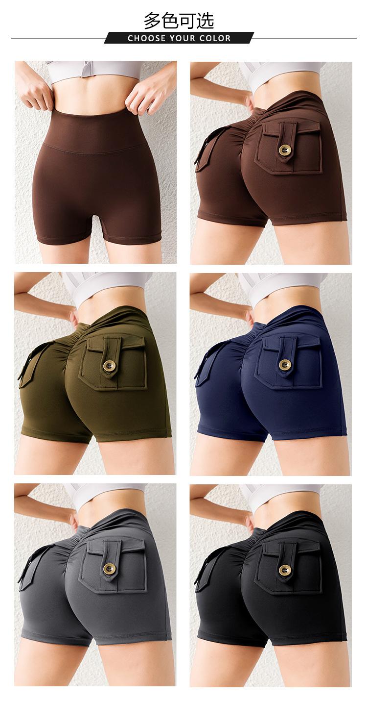 Pantalones de Tres Puntos Fitness Melocotón Nude para Mujer con Bolsillo Cintura Alta Levanta Caderas Ajustados Shorts Deportivos de Secado Rápido para Correr Yoga