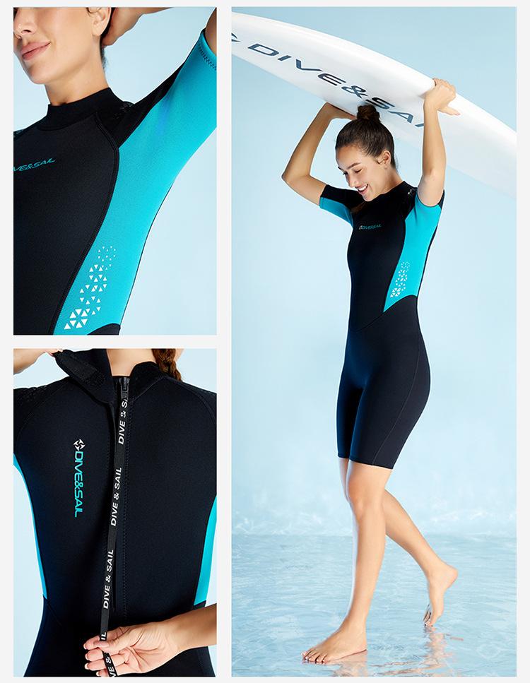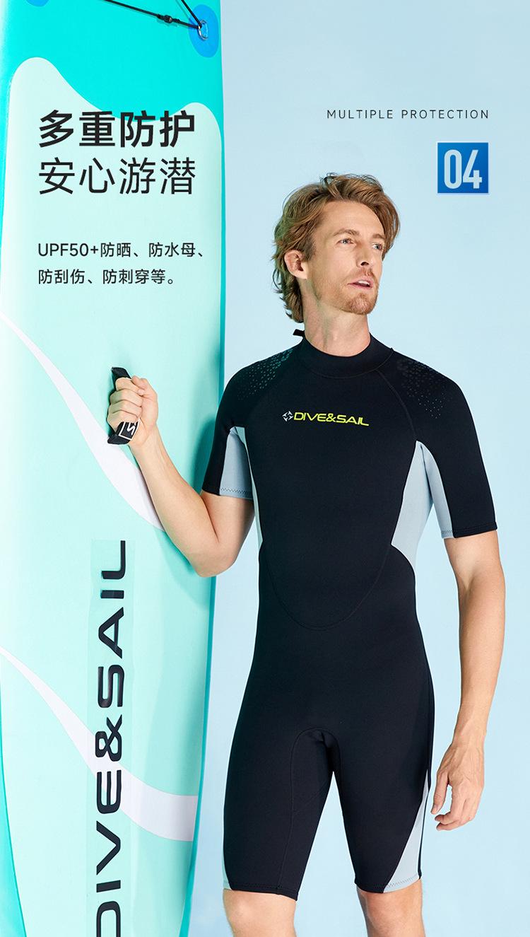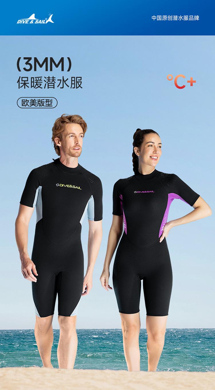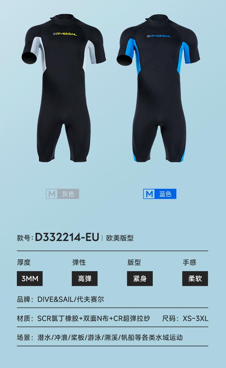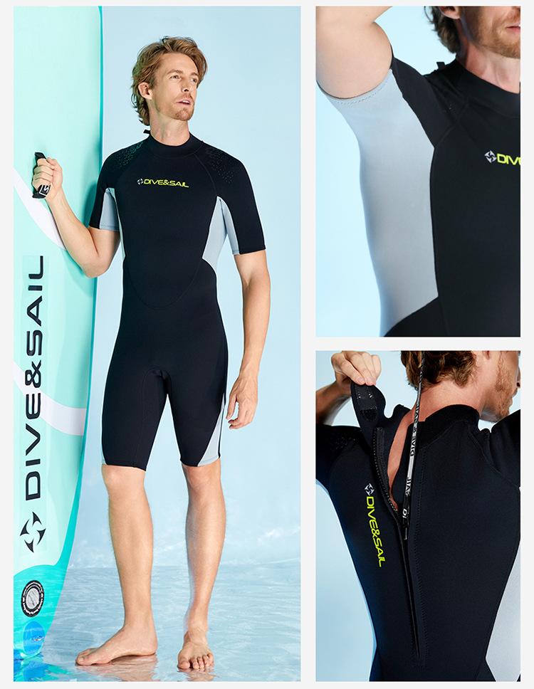 DIVE & SAIL traje de buceo cálido 3MM de una pieza manga corta shorts traje de buceo para hombre a prueba de frío traje de surf natación snorkel