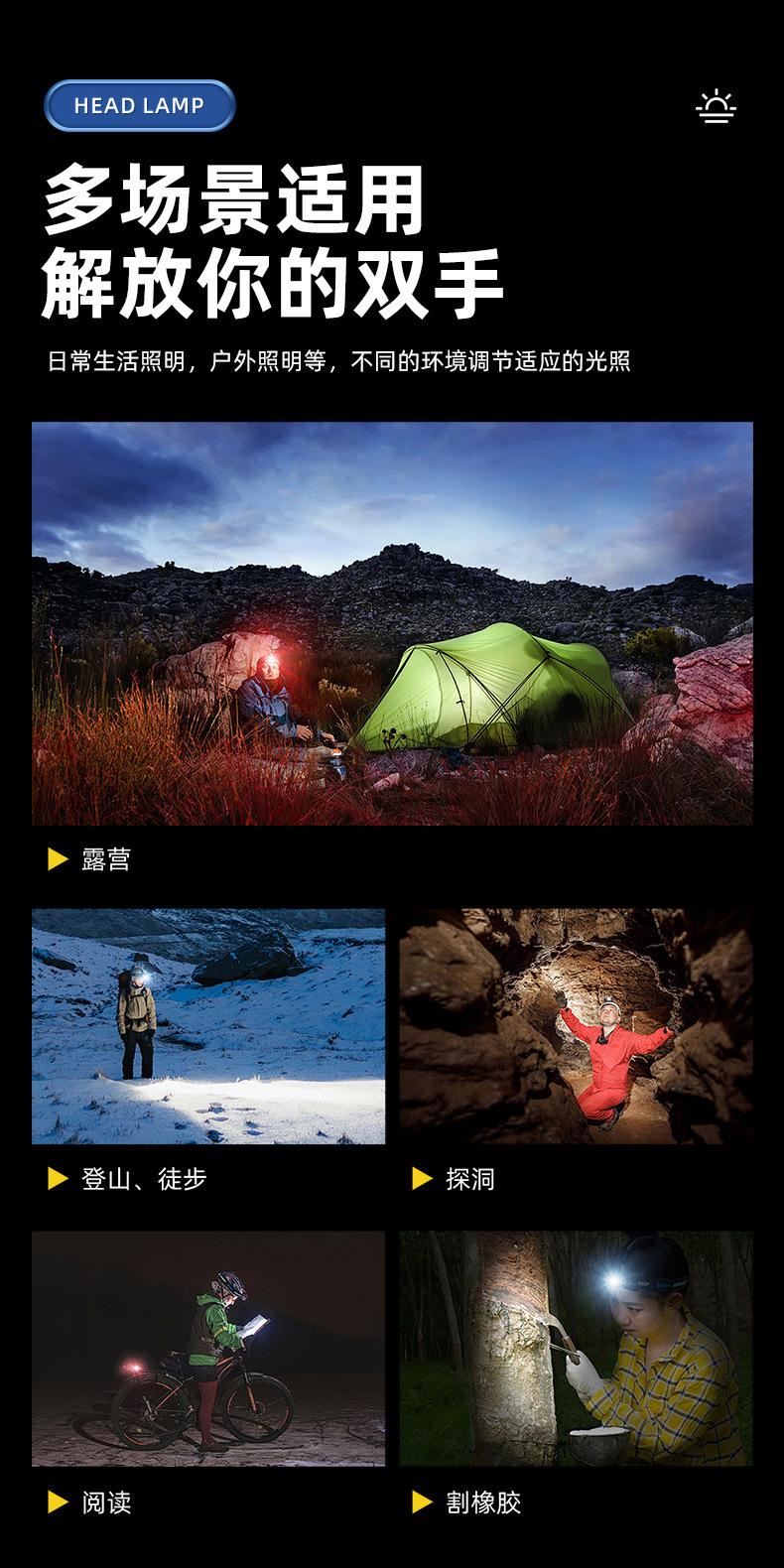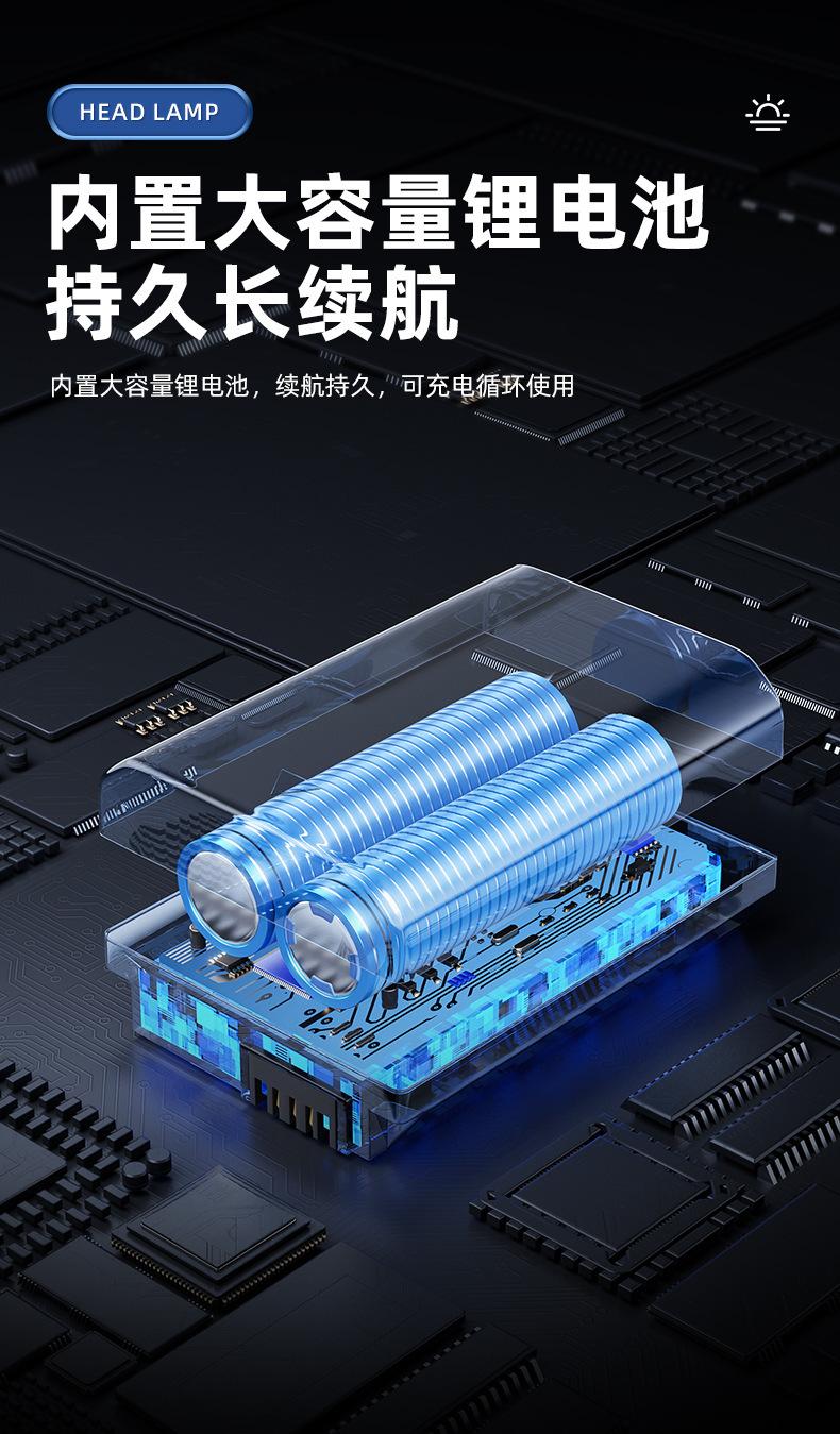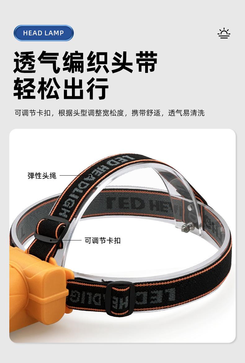 Td837 headlamp + headband + built-in 2400 mah lithium battery + charging cable + packaging box