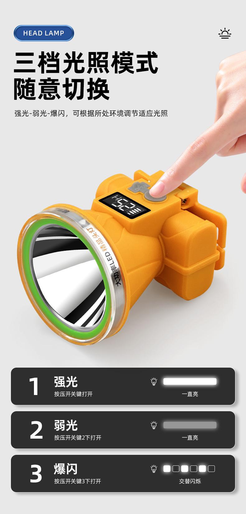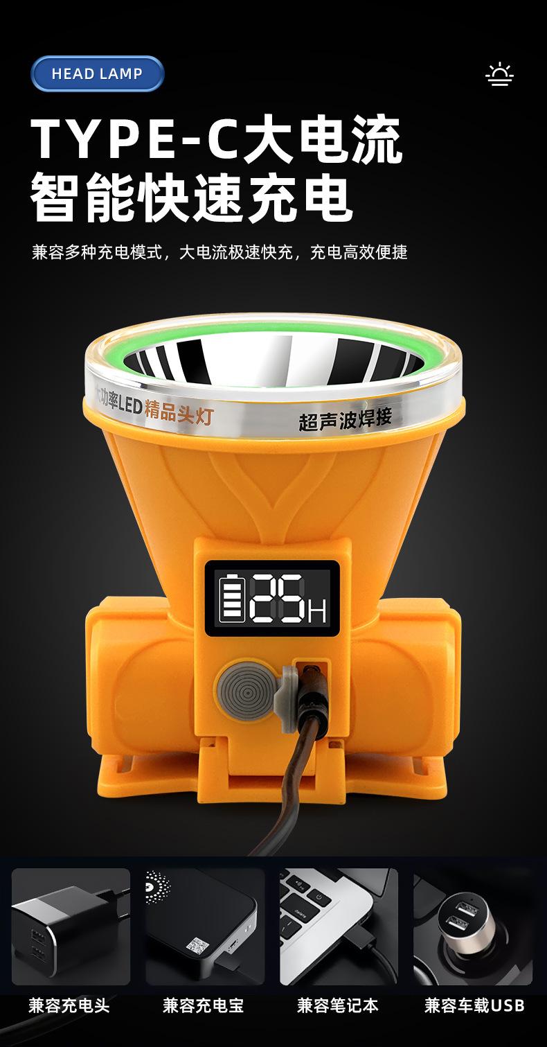 Faro Luz Fuerte Recargable Ultrabrillante Iluminación Montada en la Cabeza Duración de Batería Ultralarga Especial para Pesca Nocturna Linterna Exterior de Largo Alcance