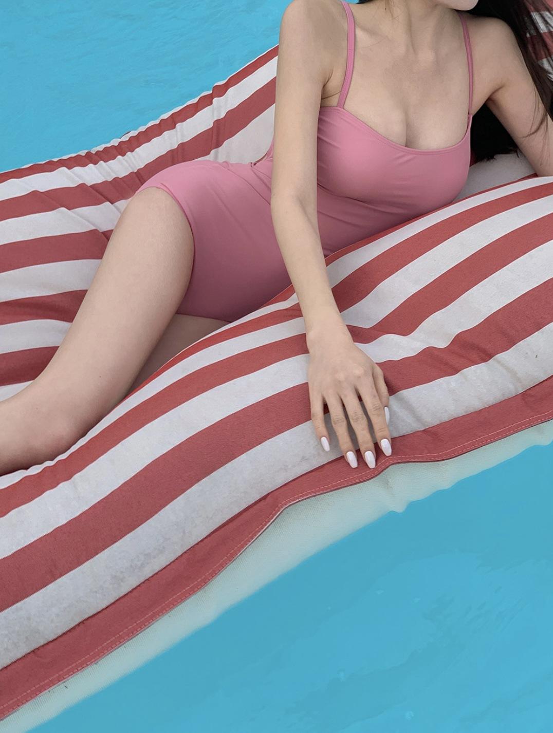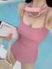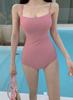 Nuevo traje de baño de una pieza de alta gama, de corte entallado, de color puro, para vacaciones en aguas termales junto al mar, pequeño y fresco.