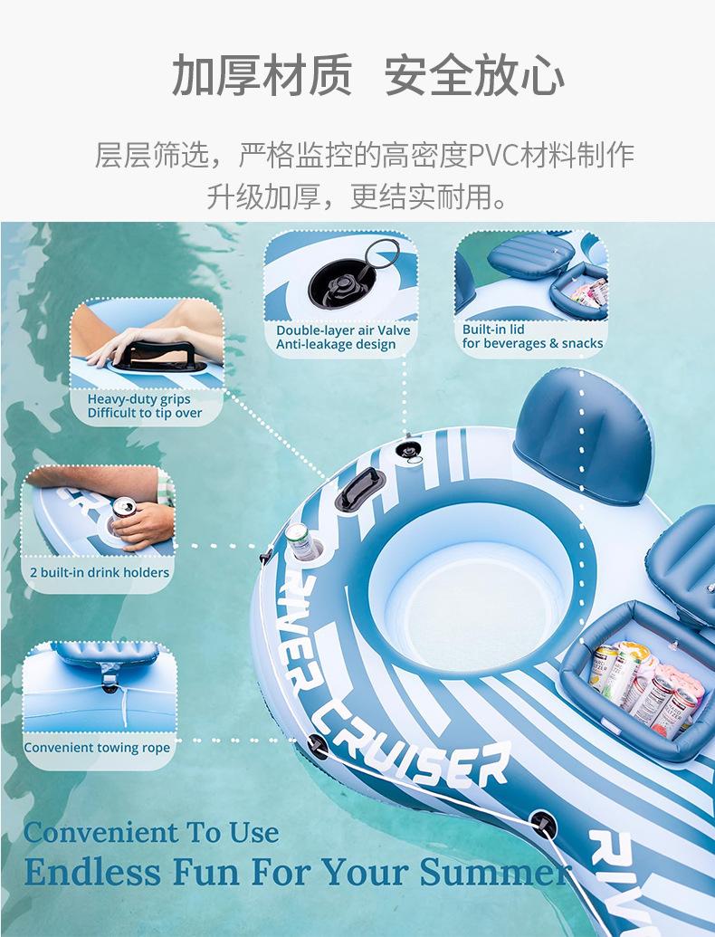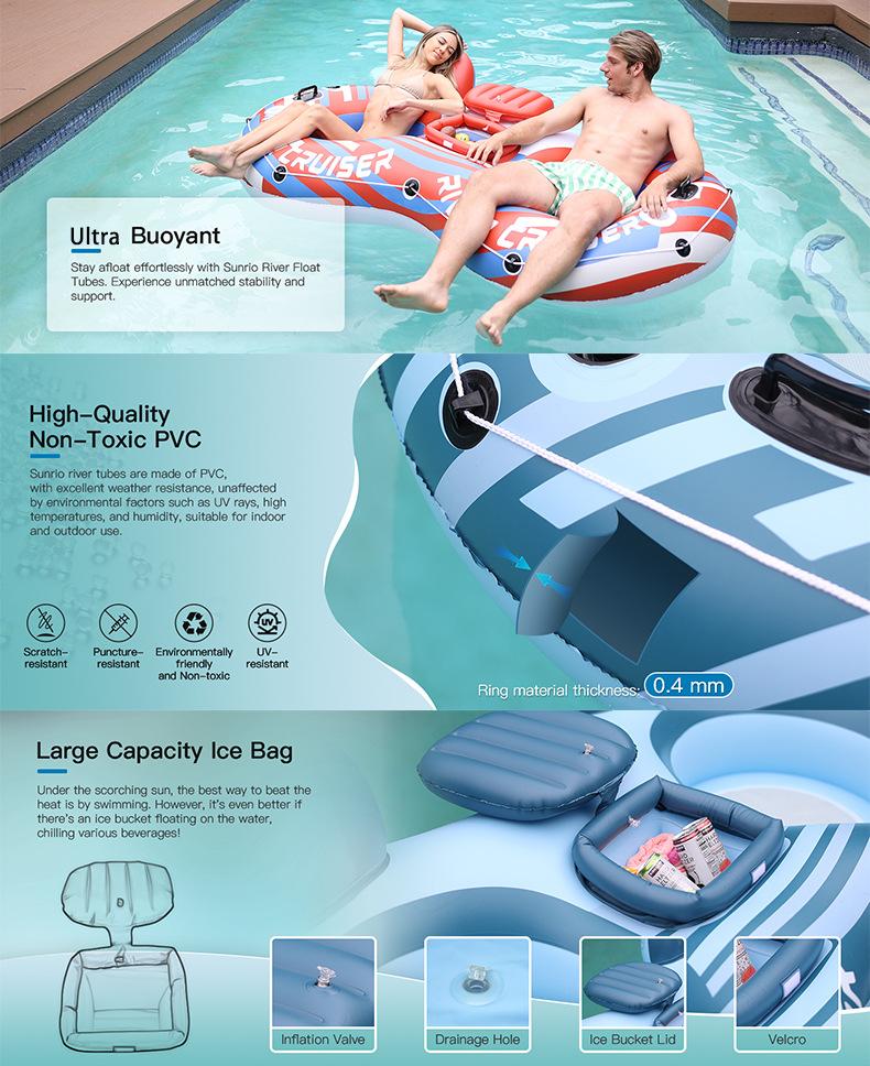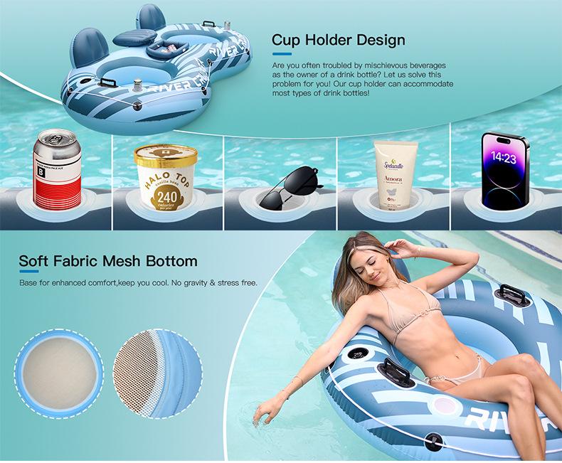 Reclinable Doble Redondo Transfronterizo Personalizado Múltiple Engrosado PVC Fiesta en la Piscina Agua Barra de Hielo Inflable Flotador para Adultos