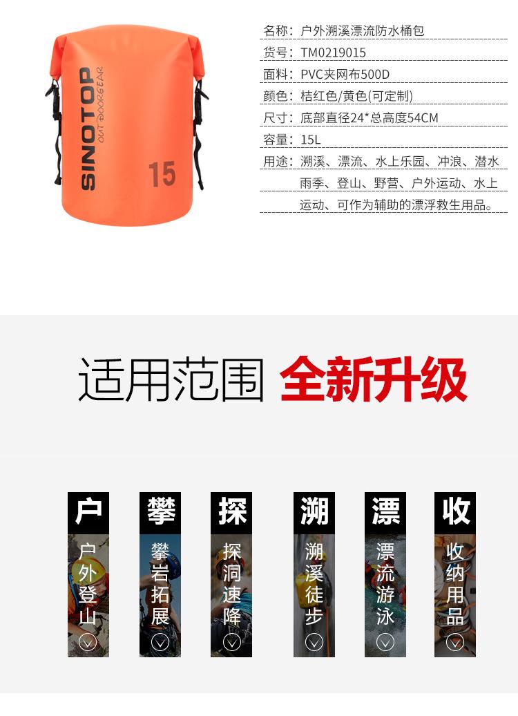 Tianmei Custom 15L Bolsa Cubeta Impermeable Surfing Natación Buceo Playa Bolsa Impermeable Malla PVC Suministros Marítimos