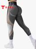 Pantalones de fitness de cintura alta color melocotón para mujer, leggings elásticos de yoga de secado rápido