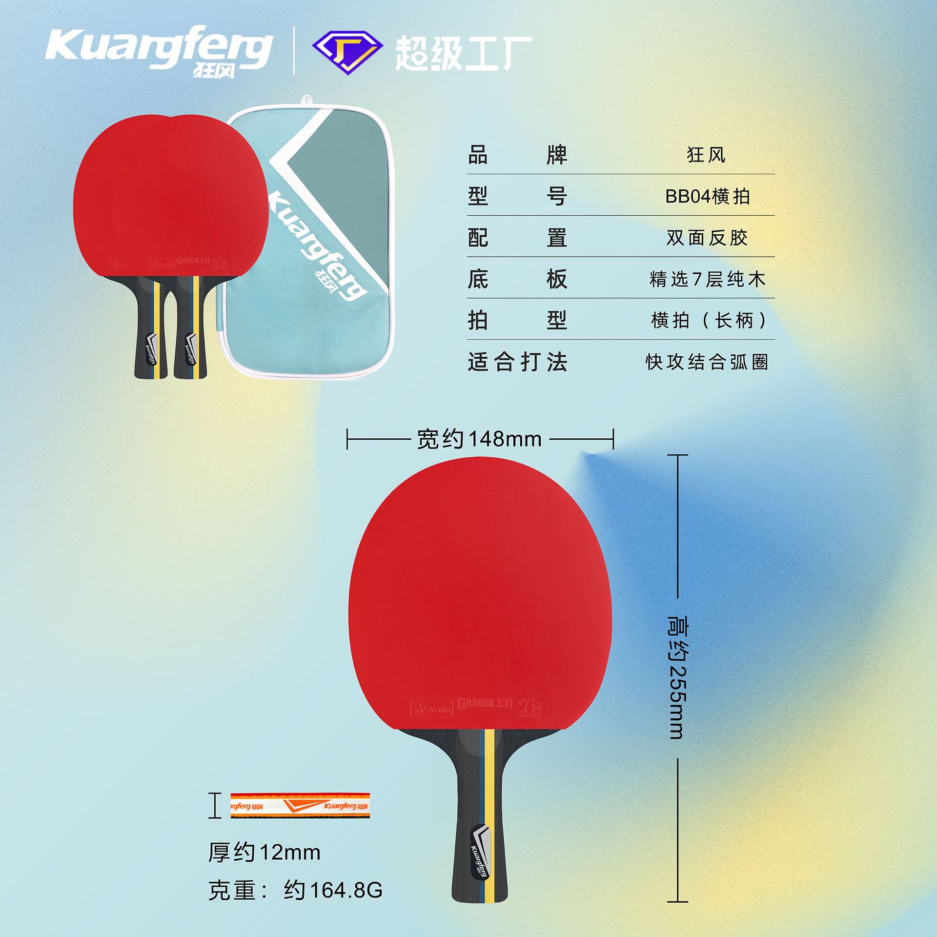 Raqueta de Tenis de Mesa Fengtong Bb04 Raqueta de Entrenamiento para Principiantes Nivel de Entrada Raqueta de Tenis de Mesa Resistente al Entretenimiento Viene con Funda para Pelota