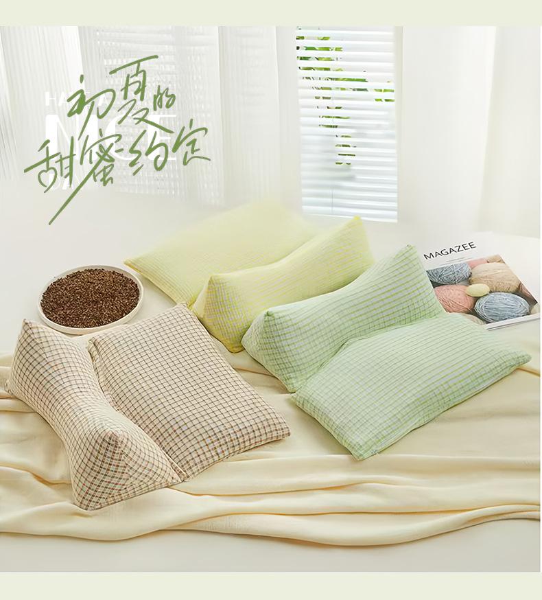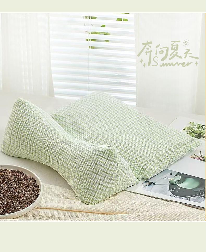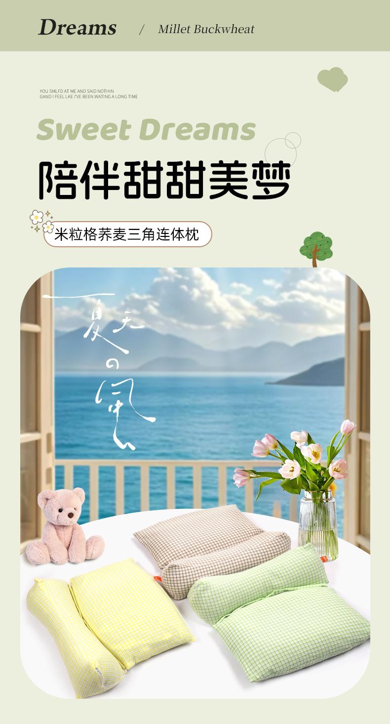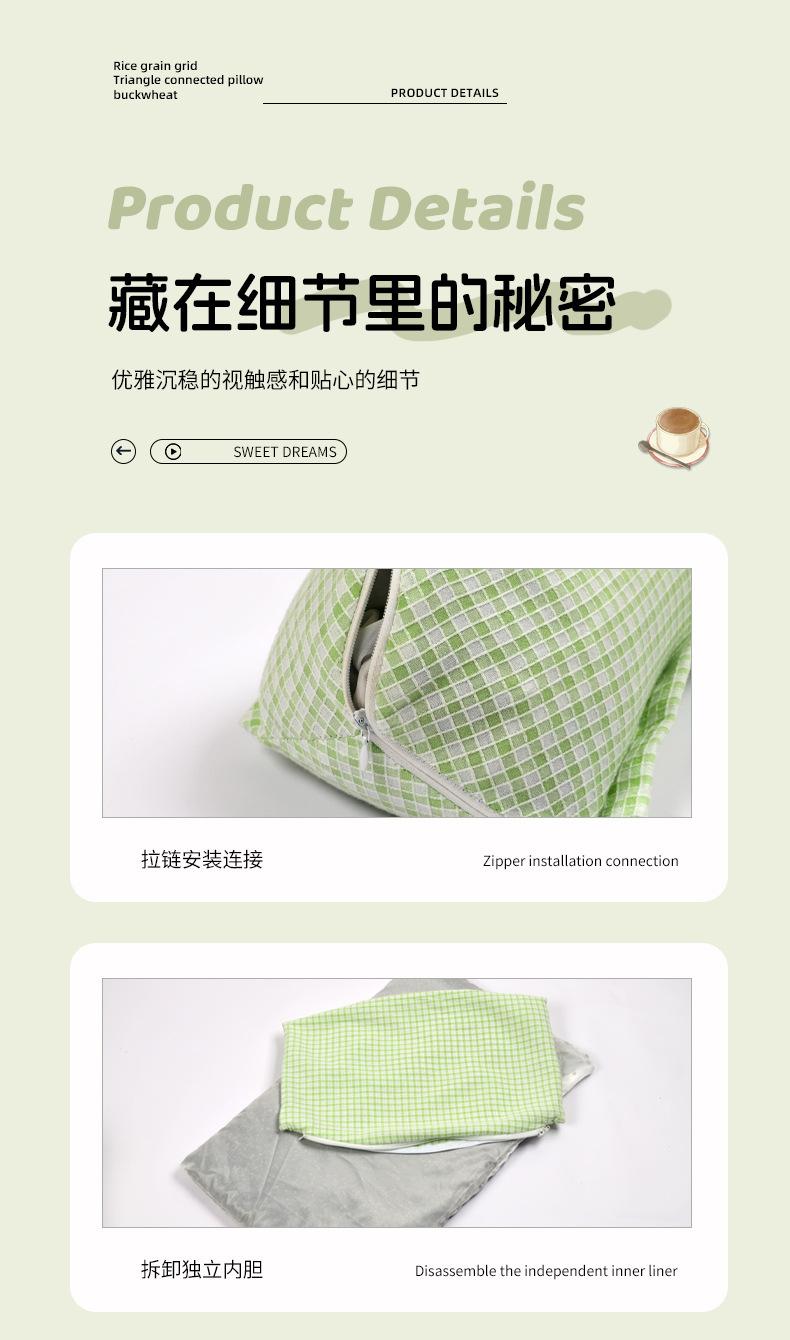 Green anti-cotton grid + buckwheat triangle pillow