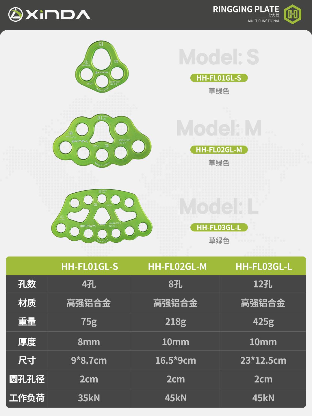 Xinda Serie H 8 Orificios Anclaje de Placa de Fuerza Divisor de Cuerda Divisor de Cuerda Fijador de Cuerda de Seguridad para Gran Altitud Equipo de Rescate para Montañismo Escalada en Roca