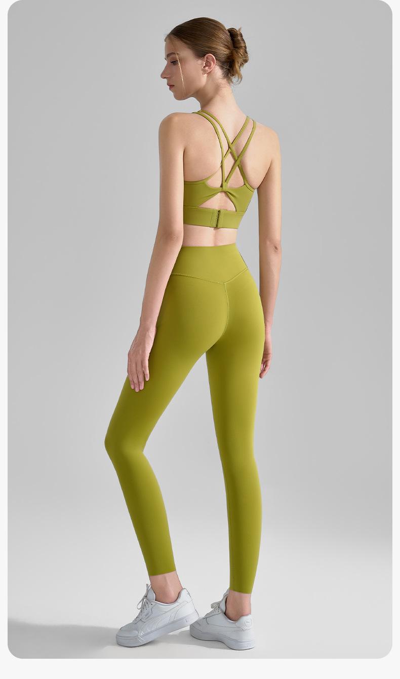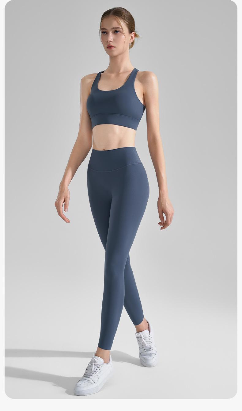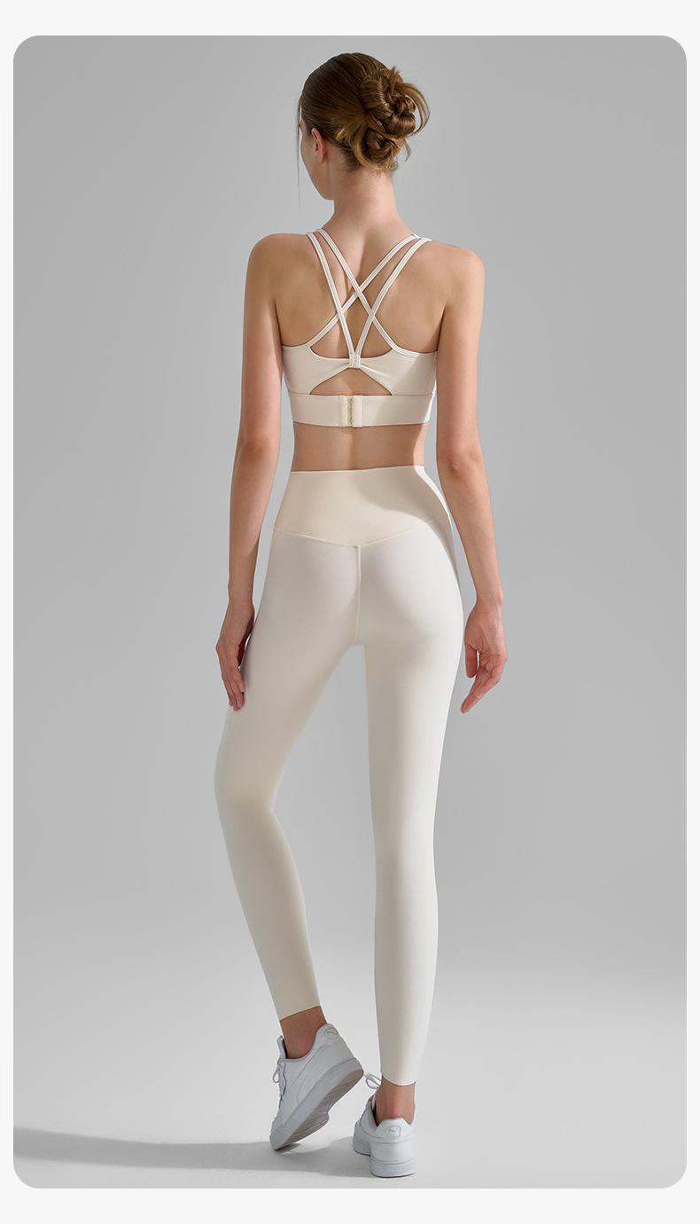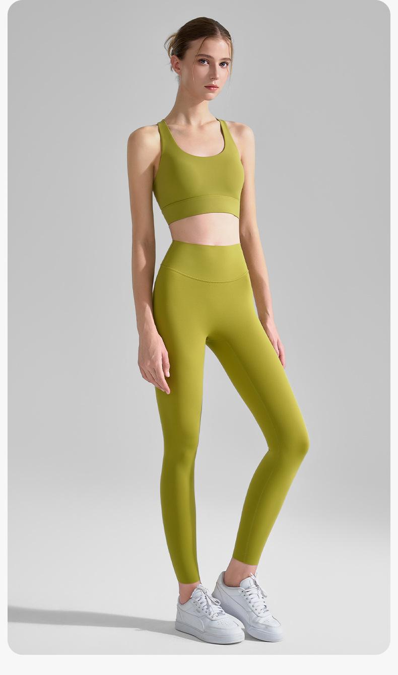 Traje de Yoga de Dos Piezas para Mujer con Tirantes Dobles Fijos, Sujetador Deportivo de Soporte Fuerte, Cintura Termosellada, Pantalones de Yoga de Lycra