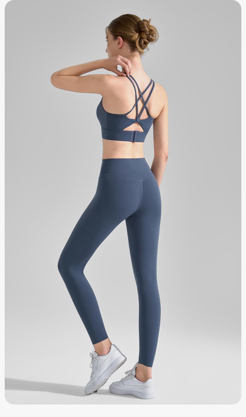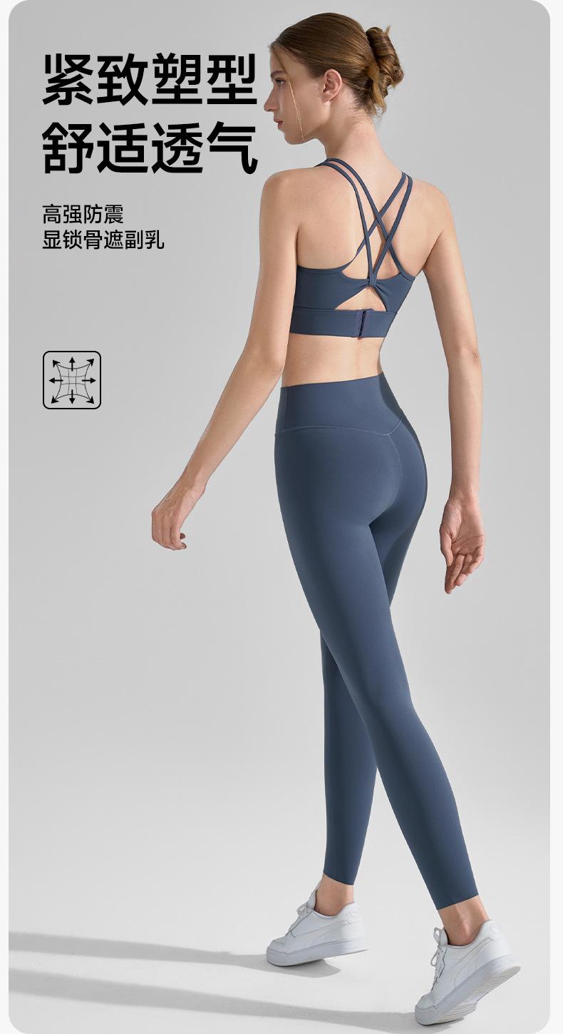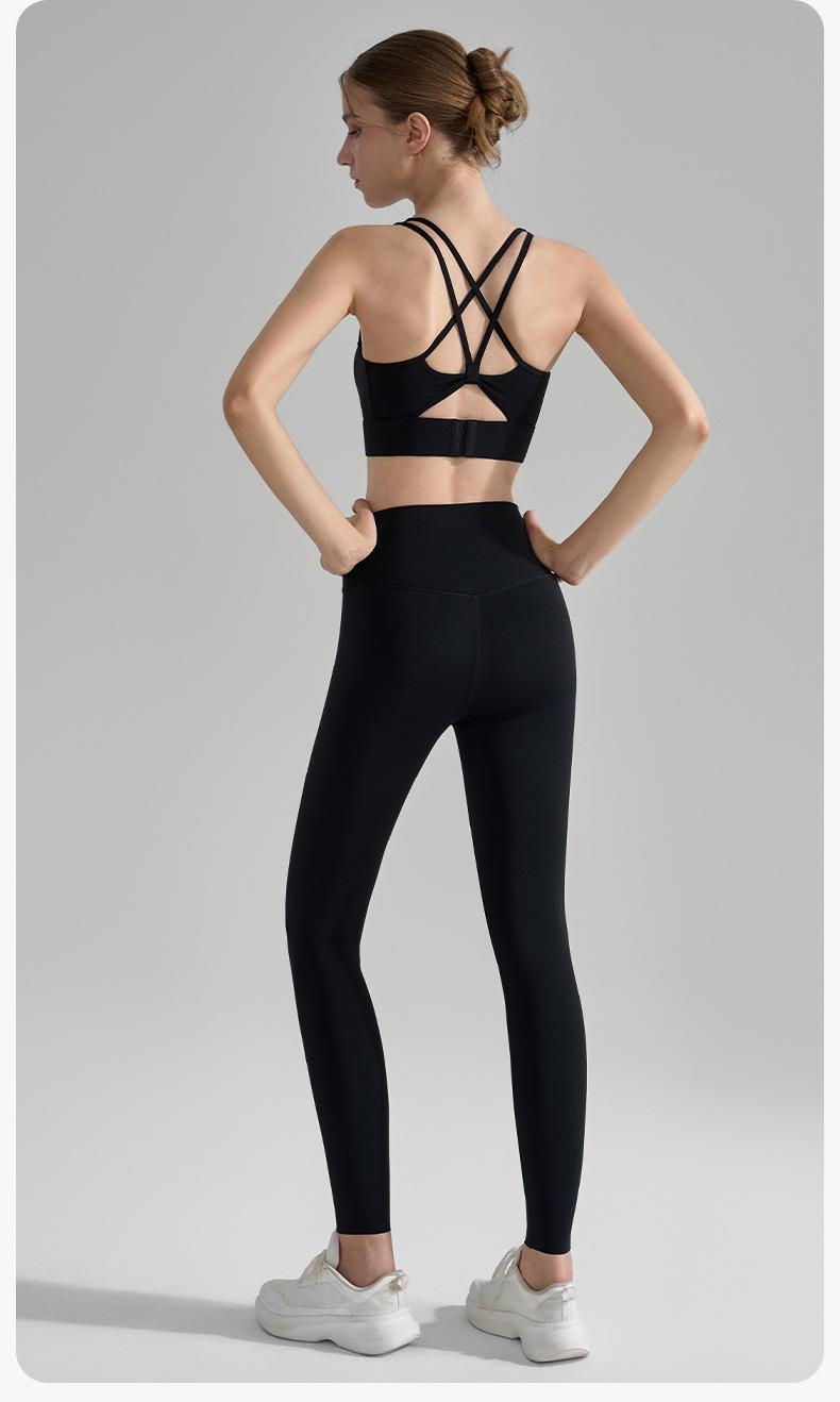 Traje de Yoga de Dos Piezas para Mujer con Tirantes Dobles Fijos, Sujetador Deportivo de Soporte Fuerte, Cintura Termosellada, Pantalones de Yoga de Lycra