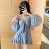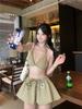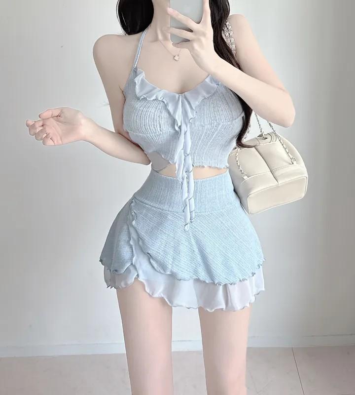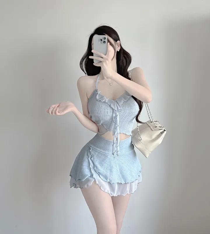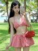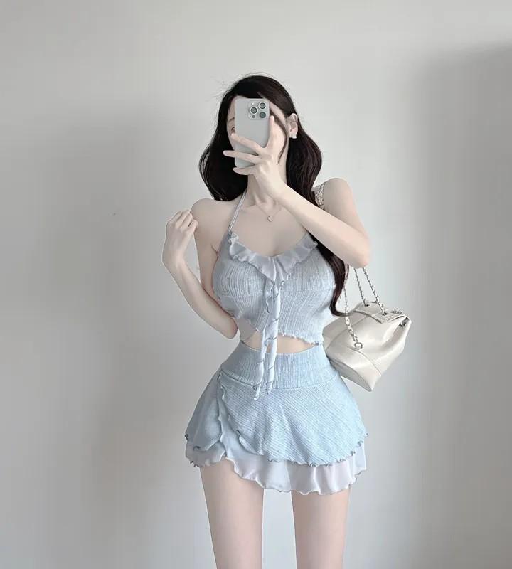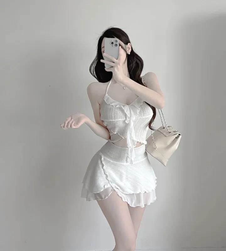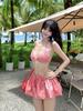 Traje de baño coreano retro de dos piezas para niñas, conservador, adelgazante, estilo falda, para vacaciones en aguas termales, traje de baño de alta gama para mujeres