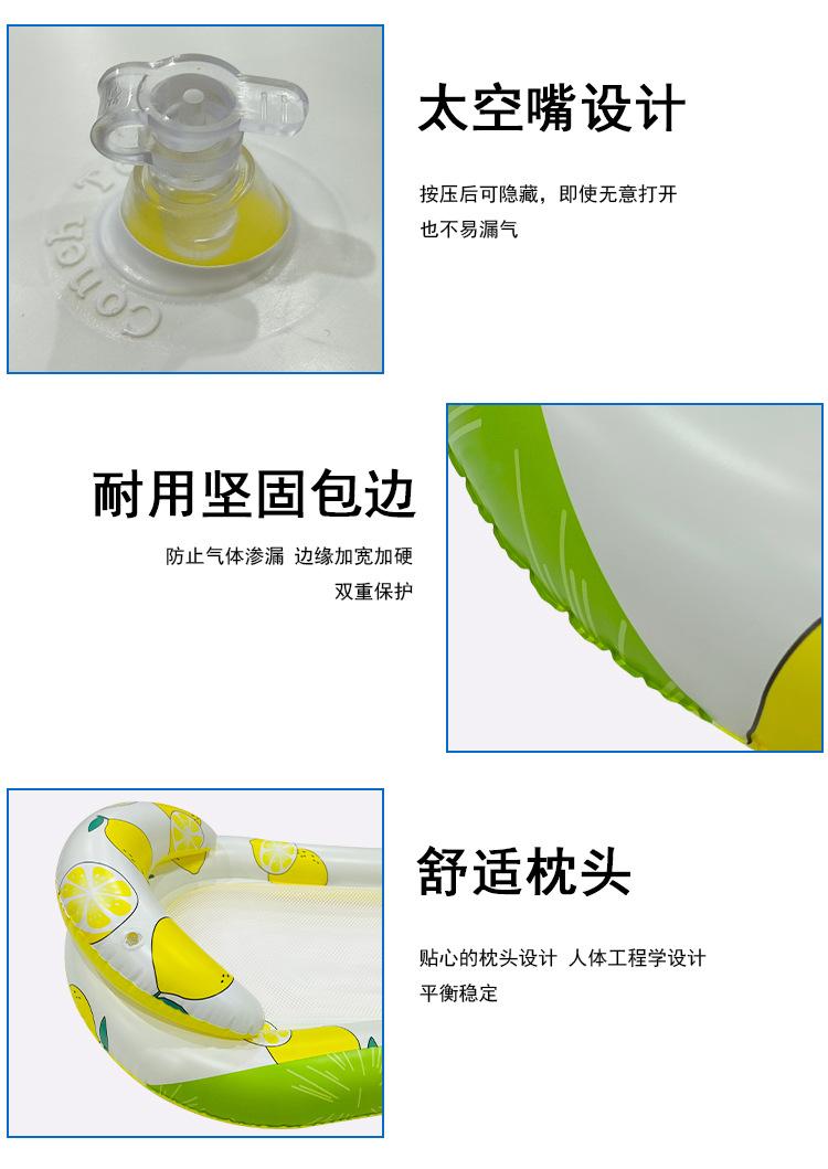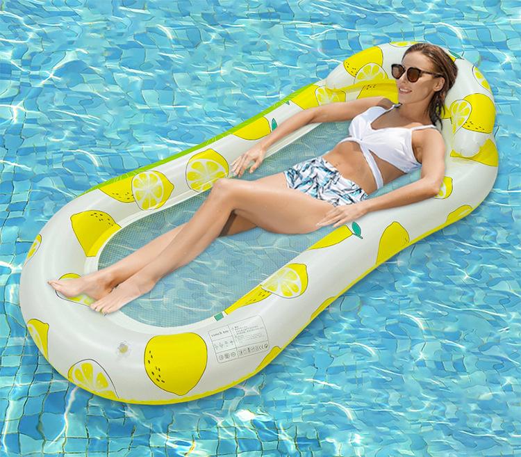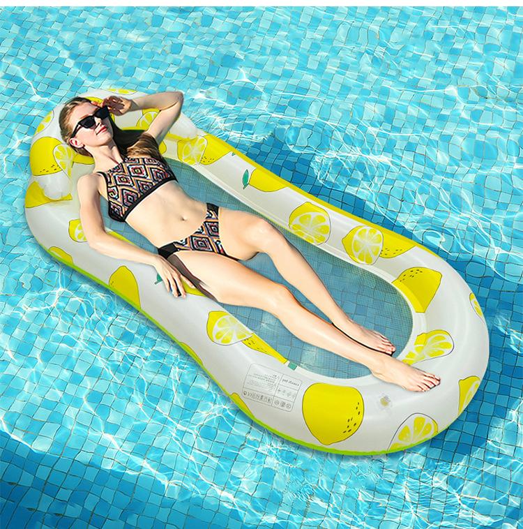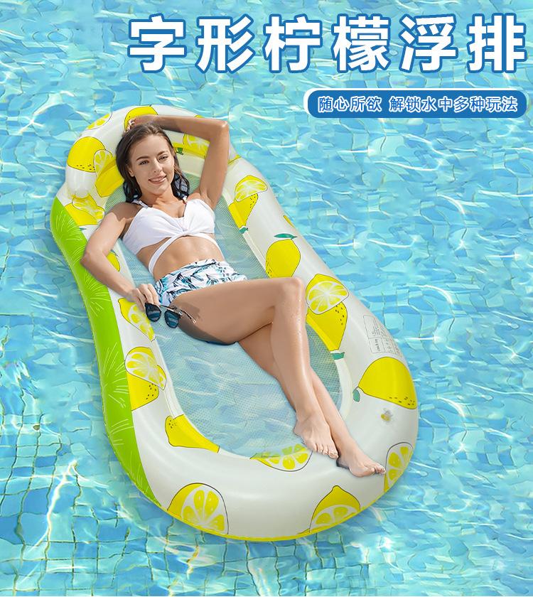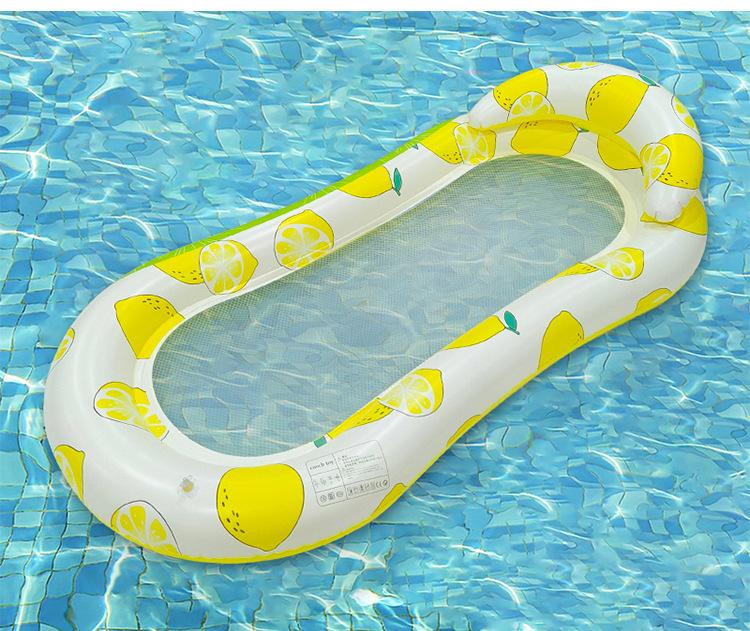 Tumbona Flotante para Piscina al Aire Libre Transfronteriza PVC Recién Llegado Forma de 8 Estampado de Limón Malla con Clips Adulto Inflable Fila Flotante