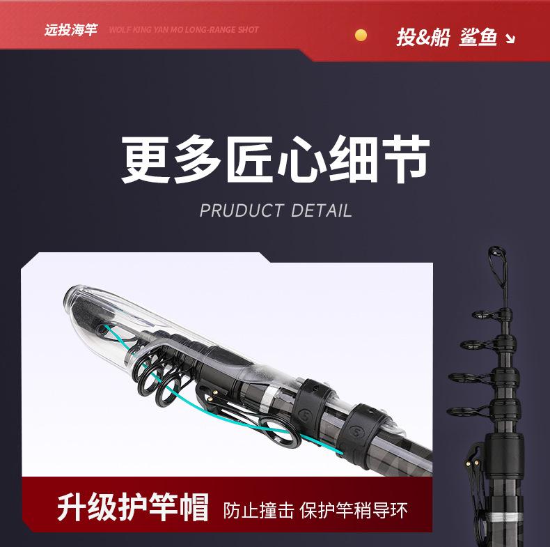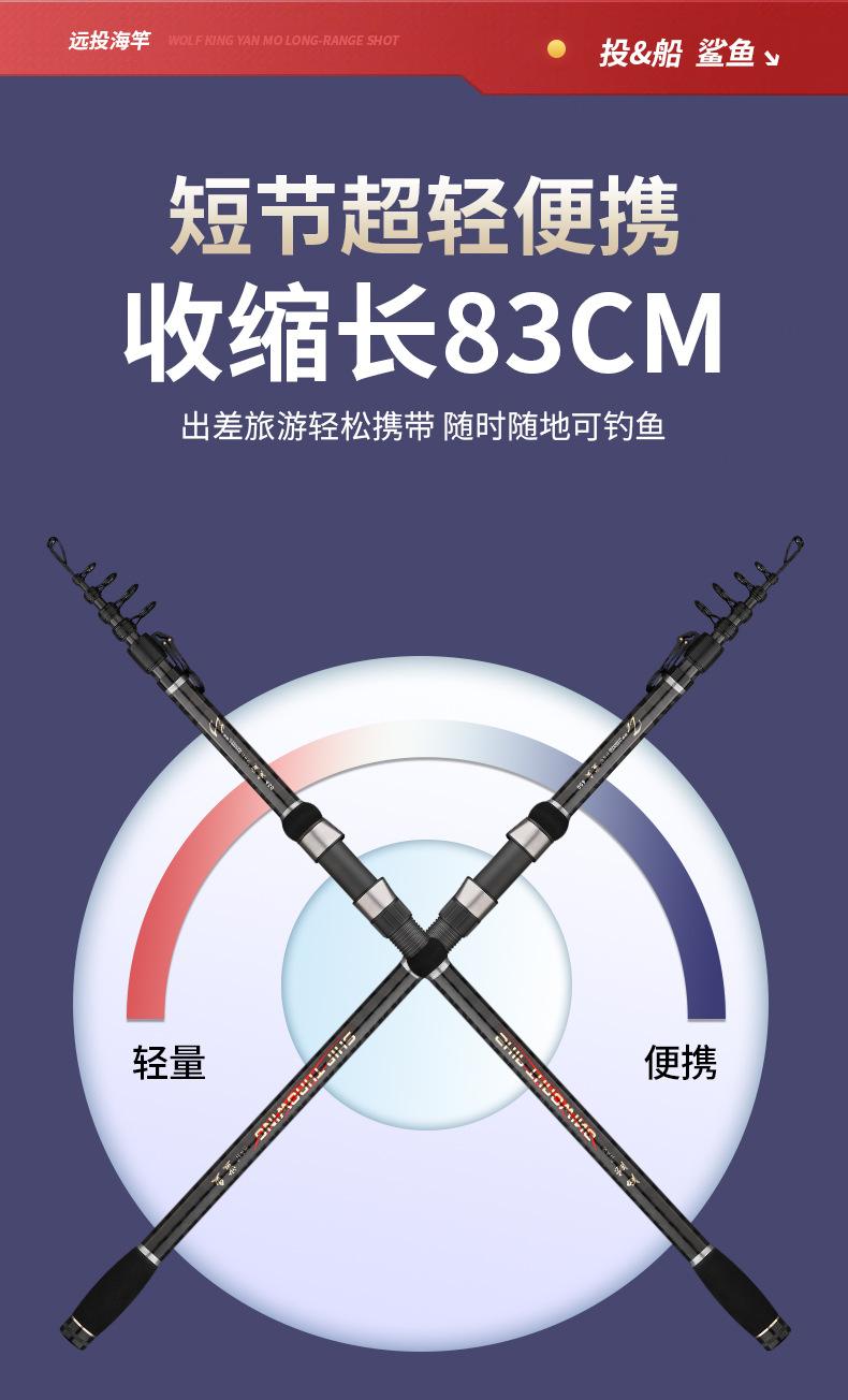 Shark high carbon ultra-light and ultra-hard short-section long-range casting rod 2.4m shark short section high carbon light and hard long-range casting single pole