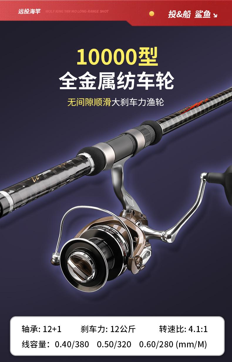 Shark high carbon ultra-light and ultra-hard short-section long-range casting rod 2.1m shark short section long-distance casting rod + 5000 full metal spinning wheel