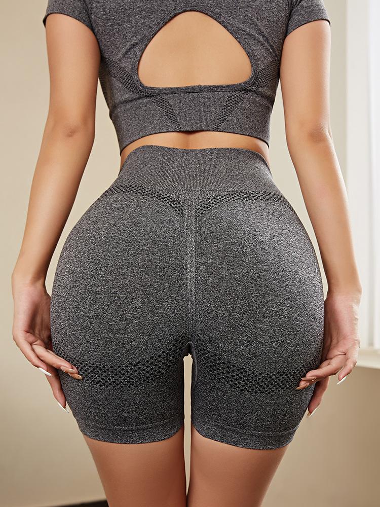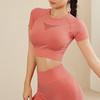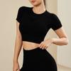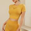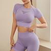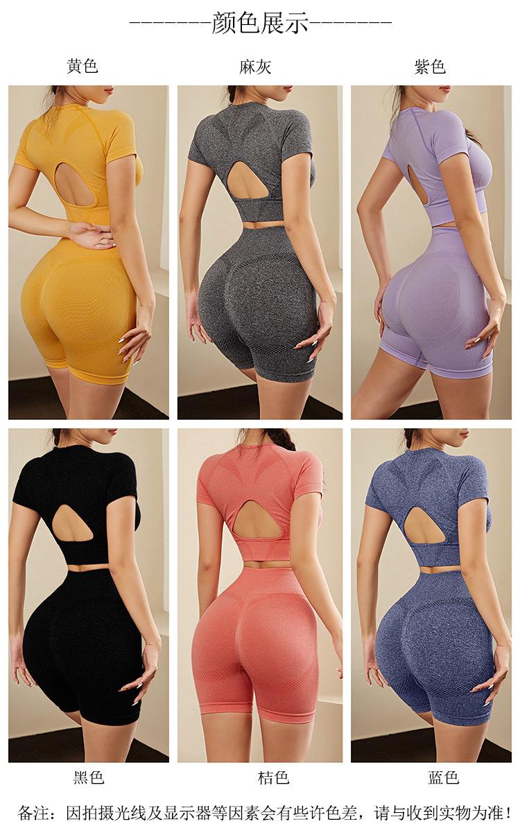 Amazon transfronterizo Shorts deportivos elásticos de cintura alta para levantar cadera Ajustados Ombligo V chaleco de yoga de manga corta Traje de fitness para mujer