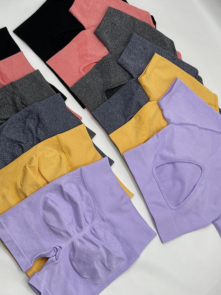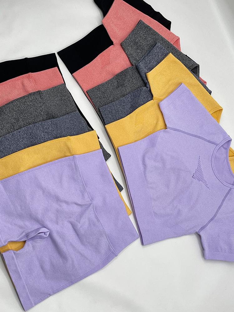 Conjunto de cinco piezas de pantalones cortos y sujetador de manga corta y manga larga de estilo europeo y americano, top de fitness, chaleco, ropa de yoga de punto de comercio exterior