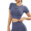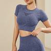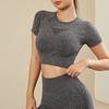 Traje de yoga plisado sin costuras europeo y americano de dos piezas para mujer, para fitness al aire libre, cintura alta, ajustado, de manga corta