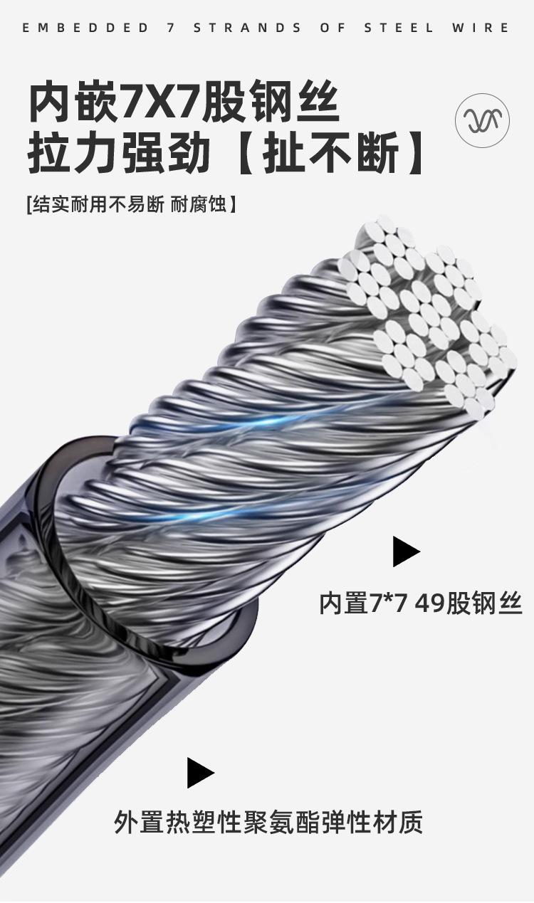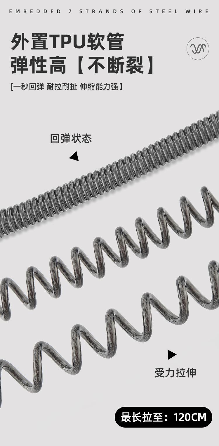 Zinc alloy buckle+tpu plastic steel wire spring rope+steel ring