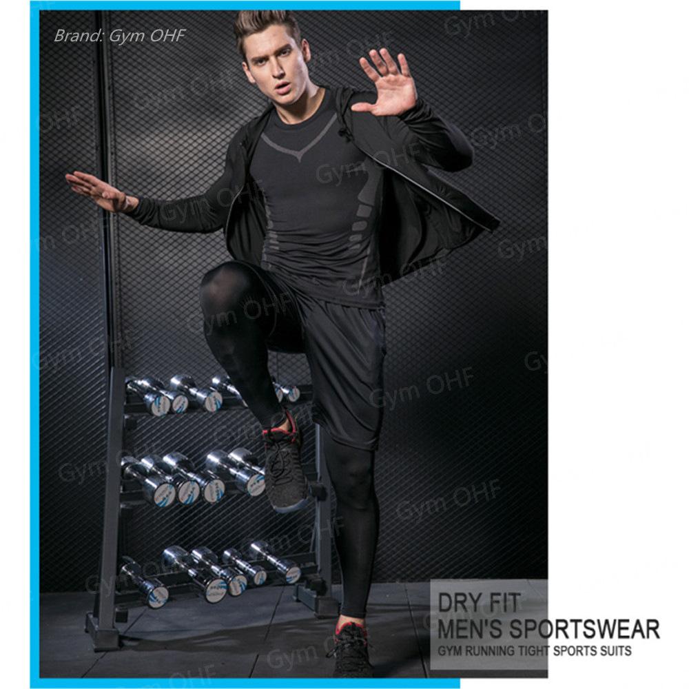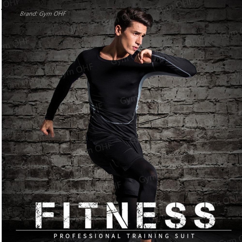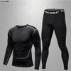 Conjunto de 2 piezas de venta caliente transfronterizo para hombre, gimnasio, manga larga, pantalones largos, conjunto de fitness, deportes, fitness, ropa deportiva para hombre