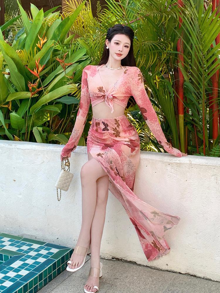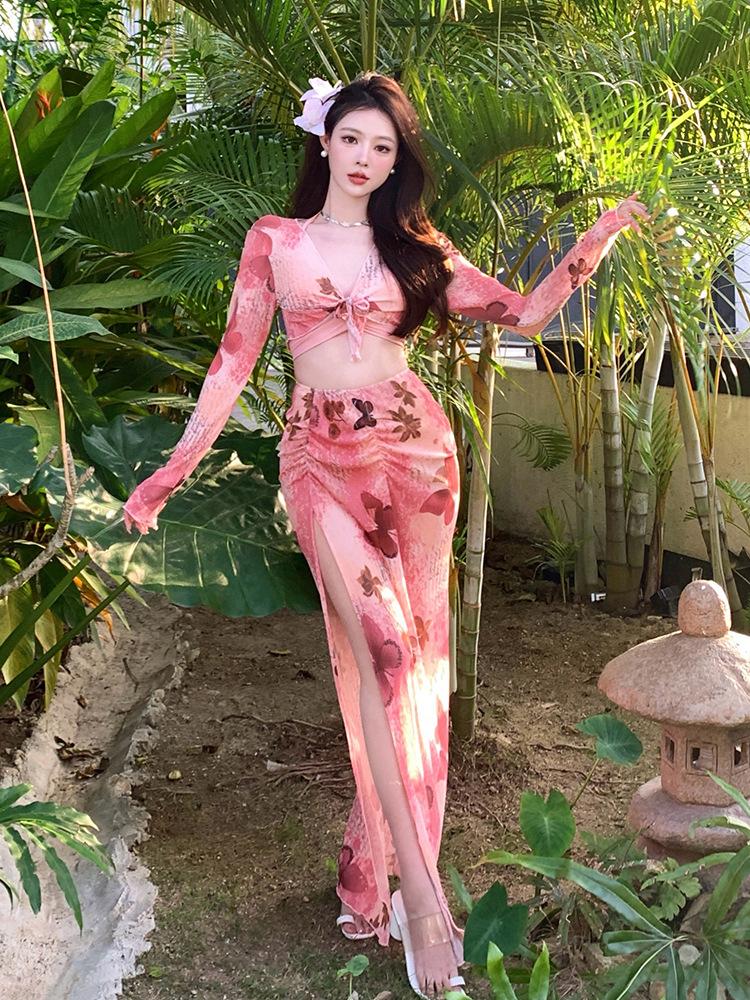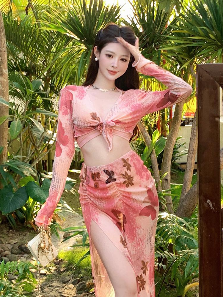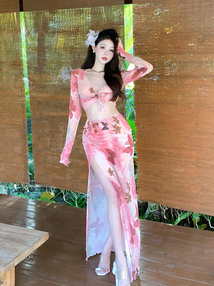 Traje de Baño Nuevo 2025 para Mujer Dividido Conservador Adelgazante Cubre Vientre Vacaciones en la Playa Bikini de Cuatro Piezas Traje de Baño para Aguas Termales