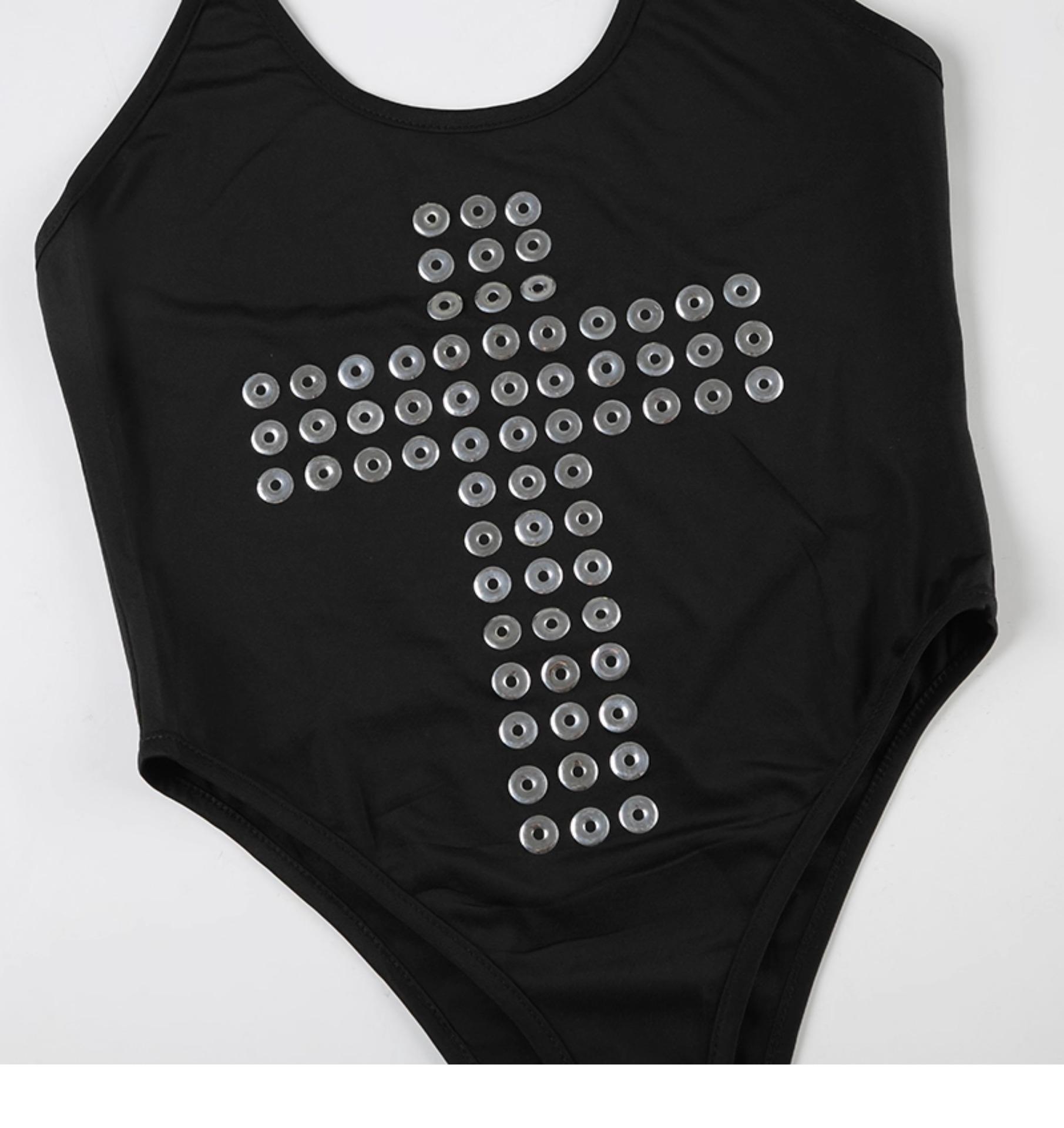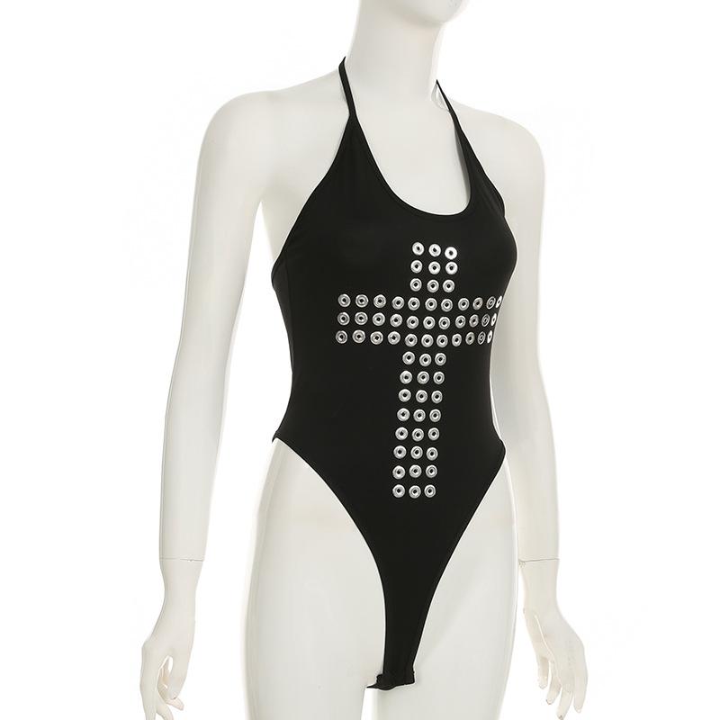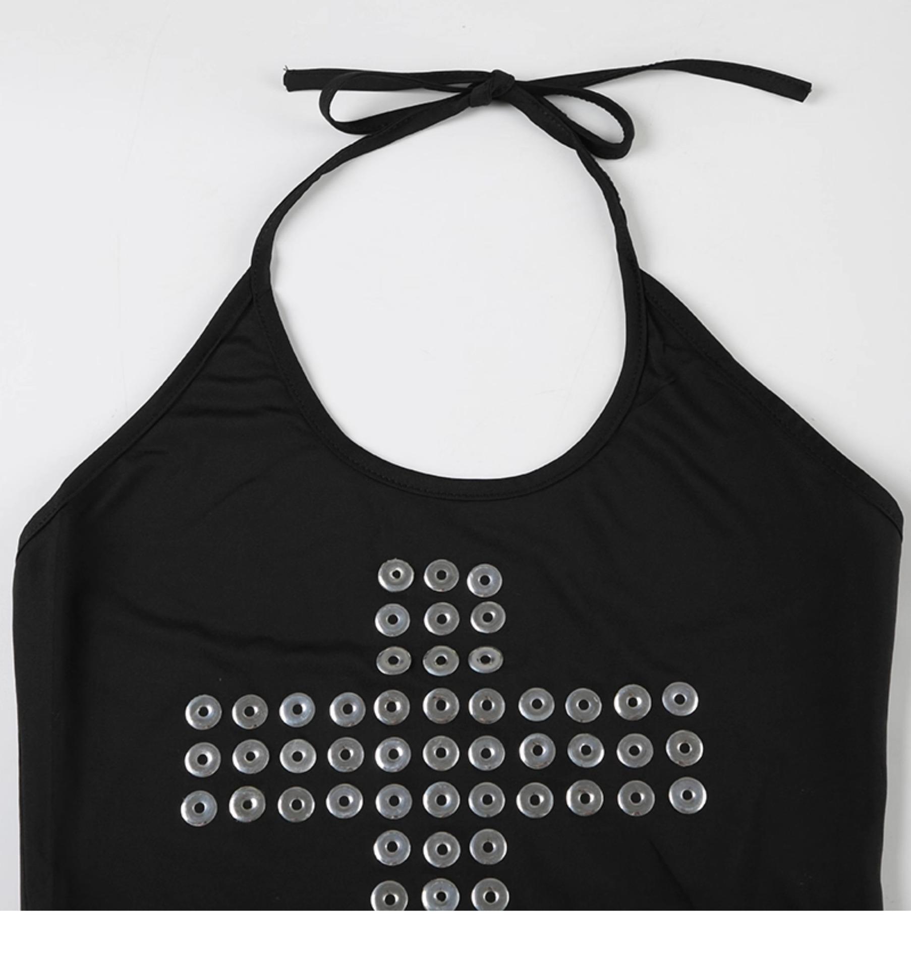 Estilo Americano 2025 Nuevo Verano Pieza de Hierro Estampado Empalme Cruzado Mono Sexy sin Espalda Tirantes Top Interior