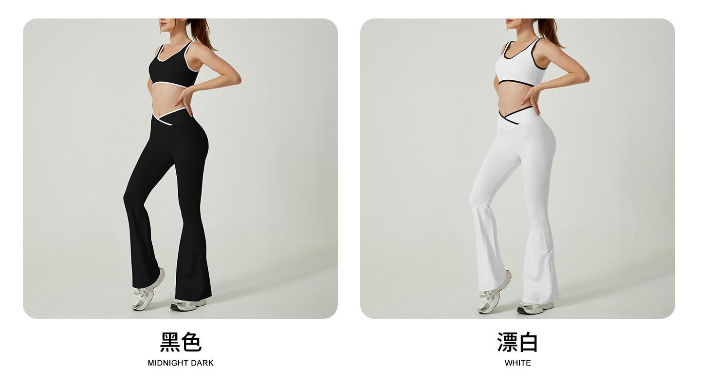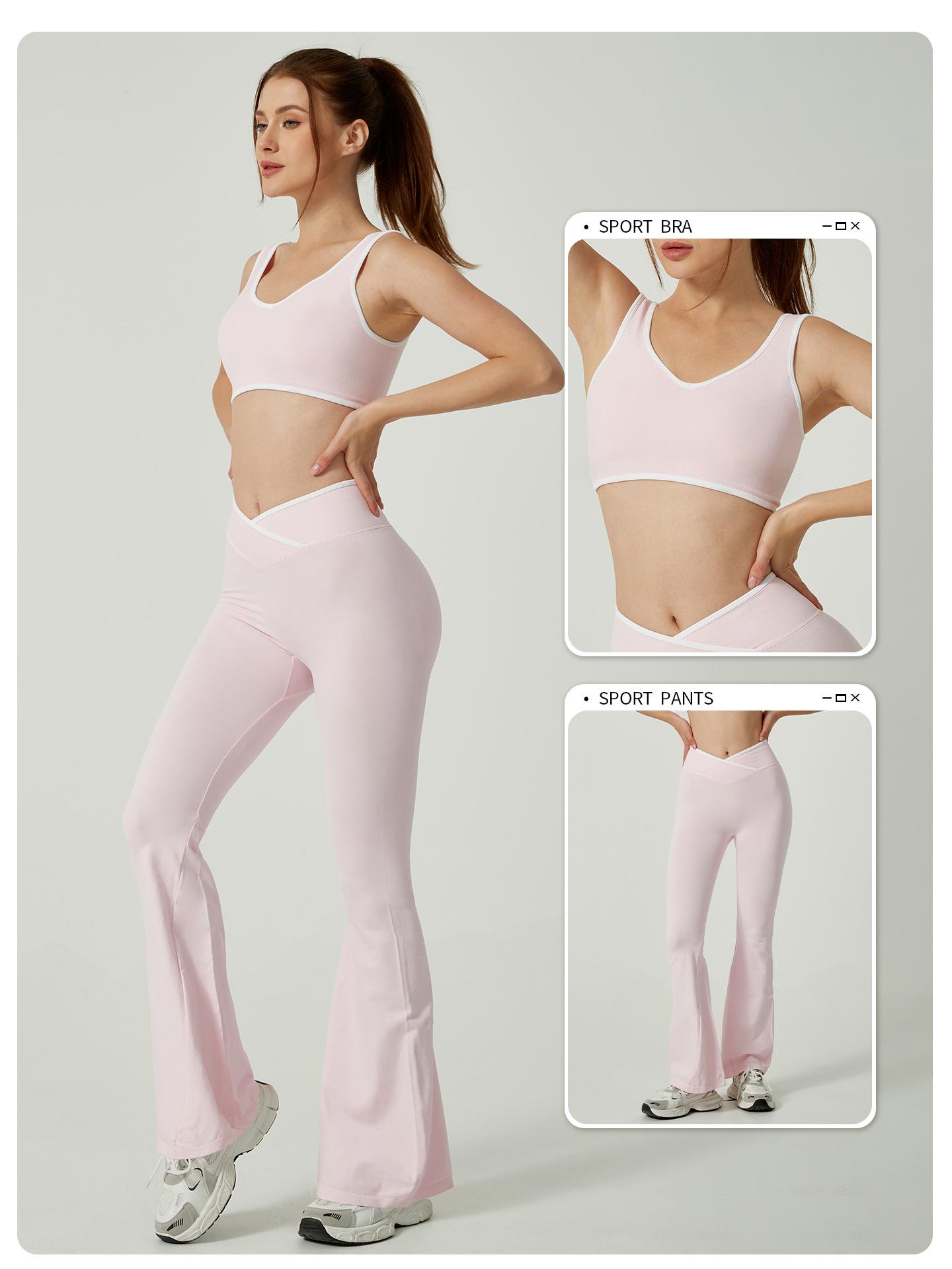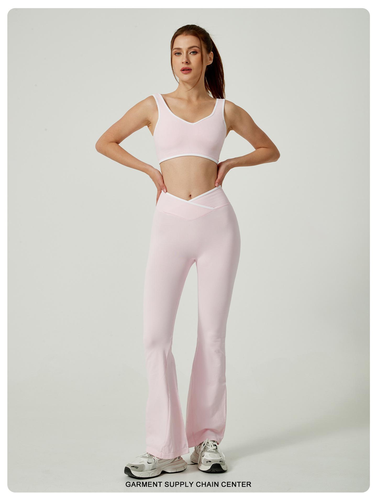 Pantalones Deportivos de Yoga de Cintura Alta Cruzados a Contraste para Mujer, Sujetador de Yoga con Cuello Diamante sin Espalda, Traje de Ropa de Yoga para Fitness para Correr