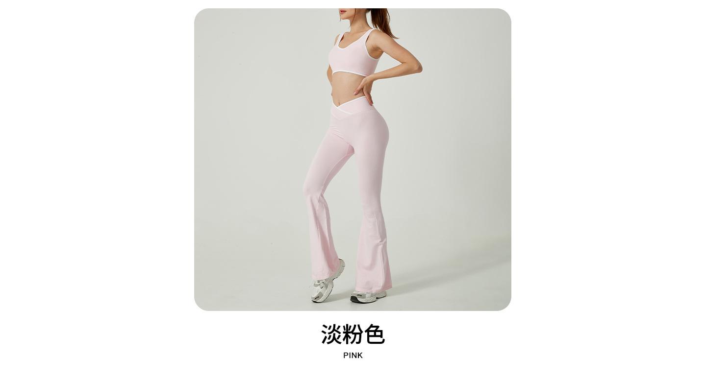 Light pink [bra], Black [bra], Bleached [bra], Light pink [flared pants], Black [flared pants], Bleached [flared pants]