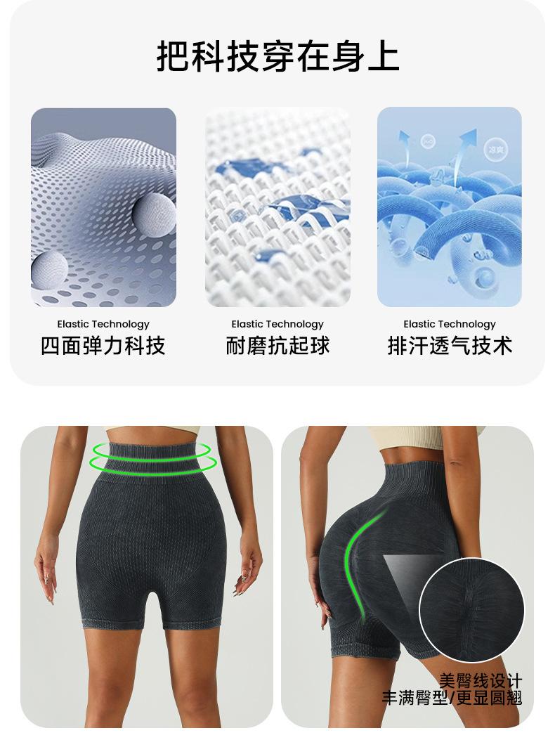 Shorts de Yoga Fitness sin Costuras Transfronterizos Esmerilados para Mujer Cadera Durazno Secado Rápido Slim Deportivos Elásticos de Tres Puntos
