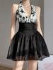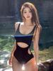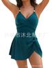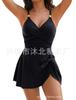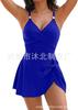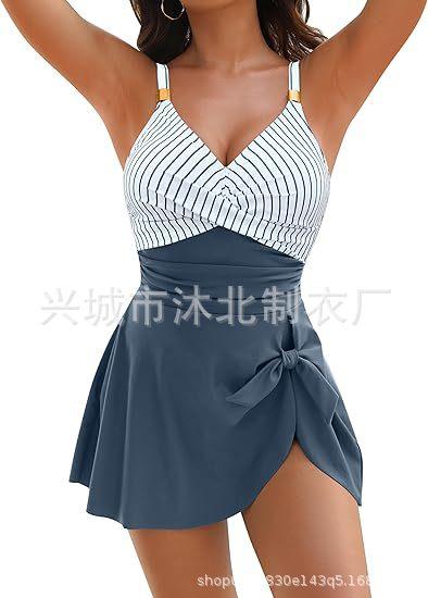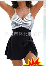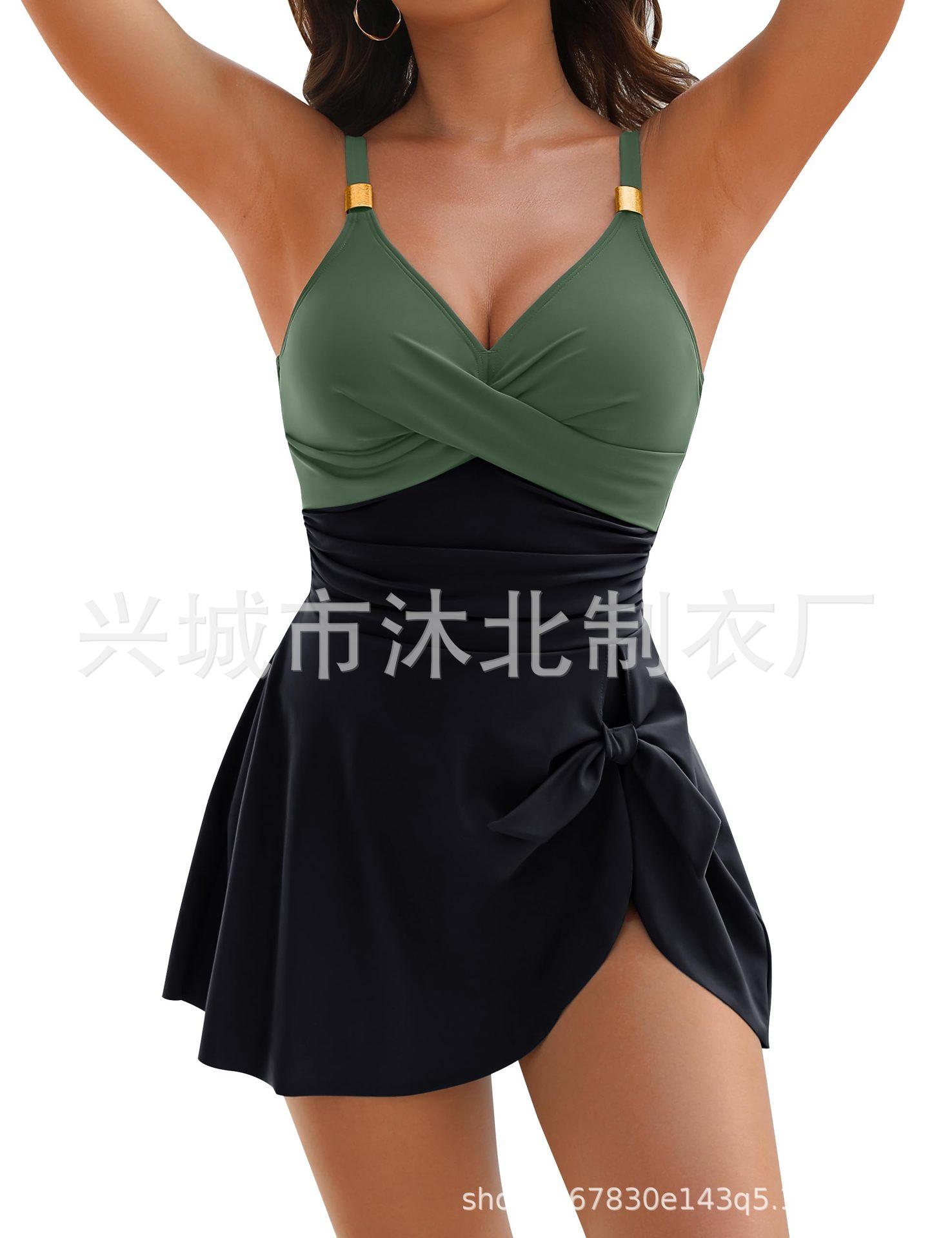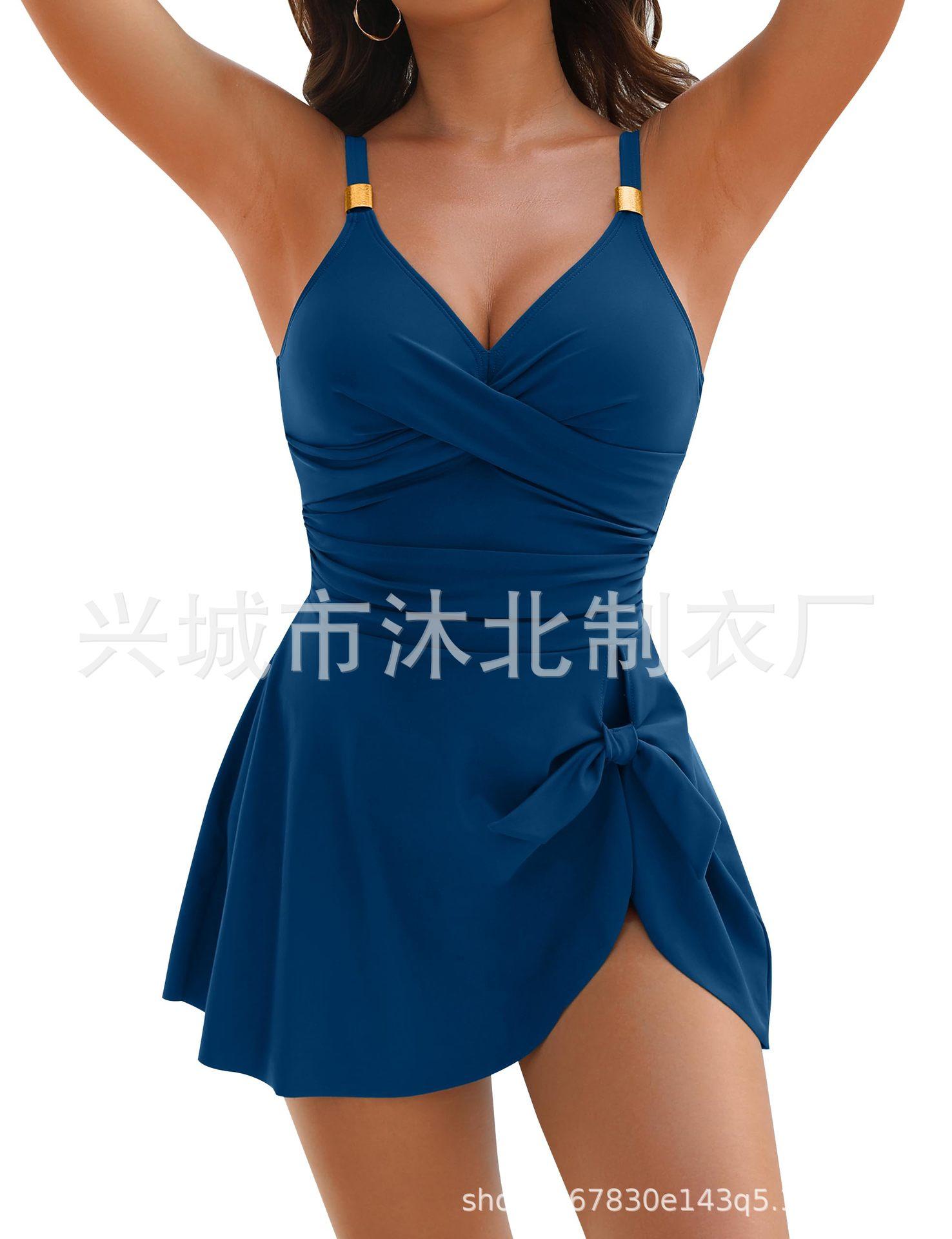 Traje de Baño Nuevo de Una Pieza Estilo Europeo y Americano para Mujer con Falda Control de Abdomen Traje de Baño Anudado con Metal Dorado para Mujer 2025