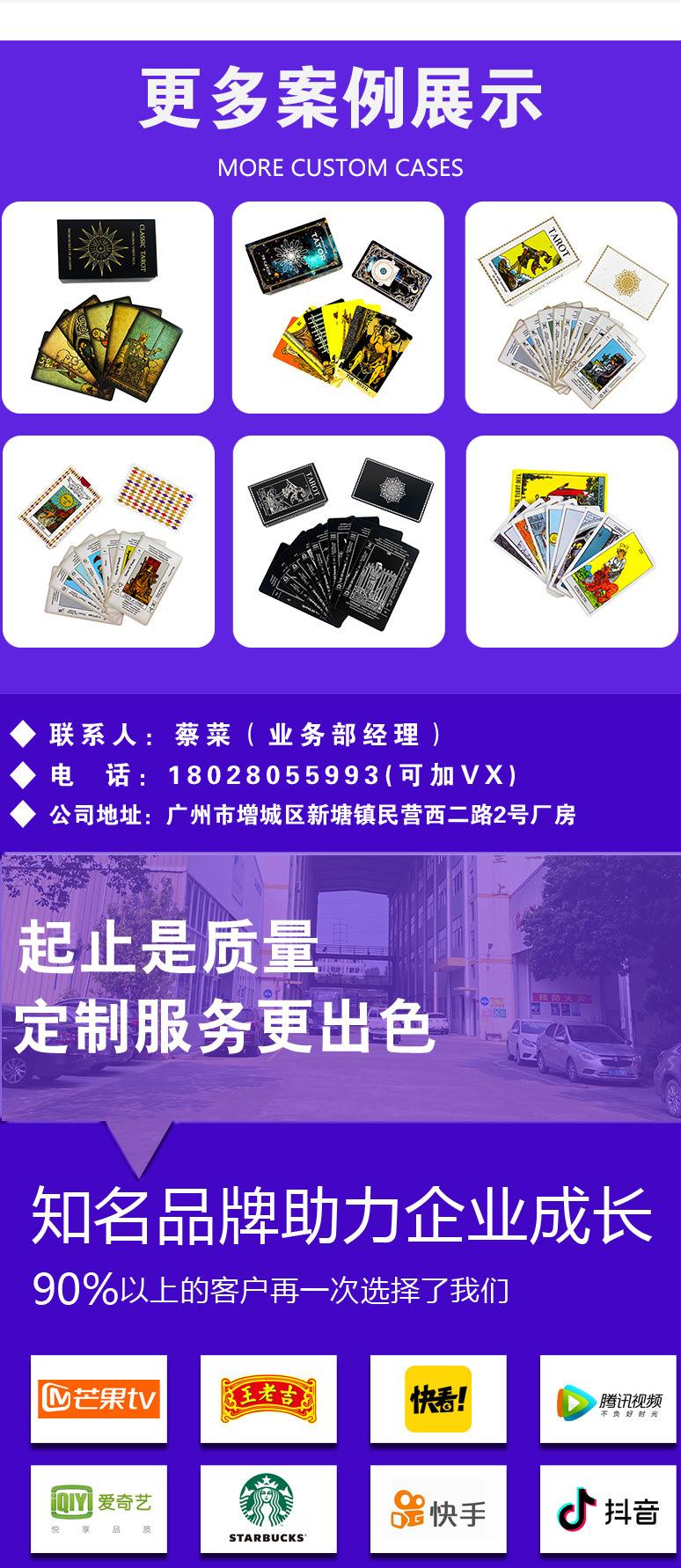 ¡Bienvenido a la Fábrica de Impresión Personalizada de Póker Jinli! Los productos de la tienda permiten a los clientes tomar muestras. Cada cliente puede pagar el franqueo para muestras gratuitas. ¡Le enviaremos un par de muestras del mismo tipo! Limitado a una pieza, por favor no ordene más! Para muestras, por favor contacte al servicio al cliente de la tienda para proporcionar sus requisitos para las cartas de tarot, ¡y le proporcionaremos muestras más cercanas para su referencia!
