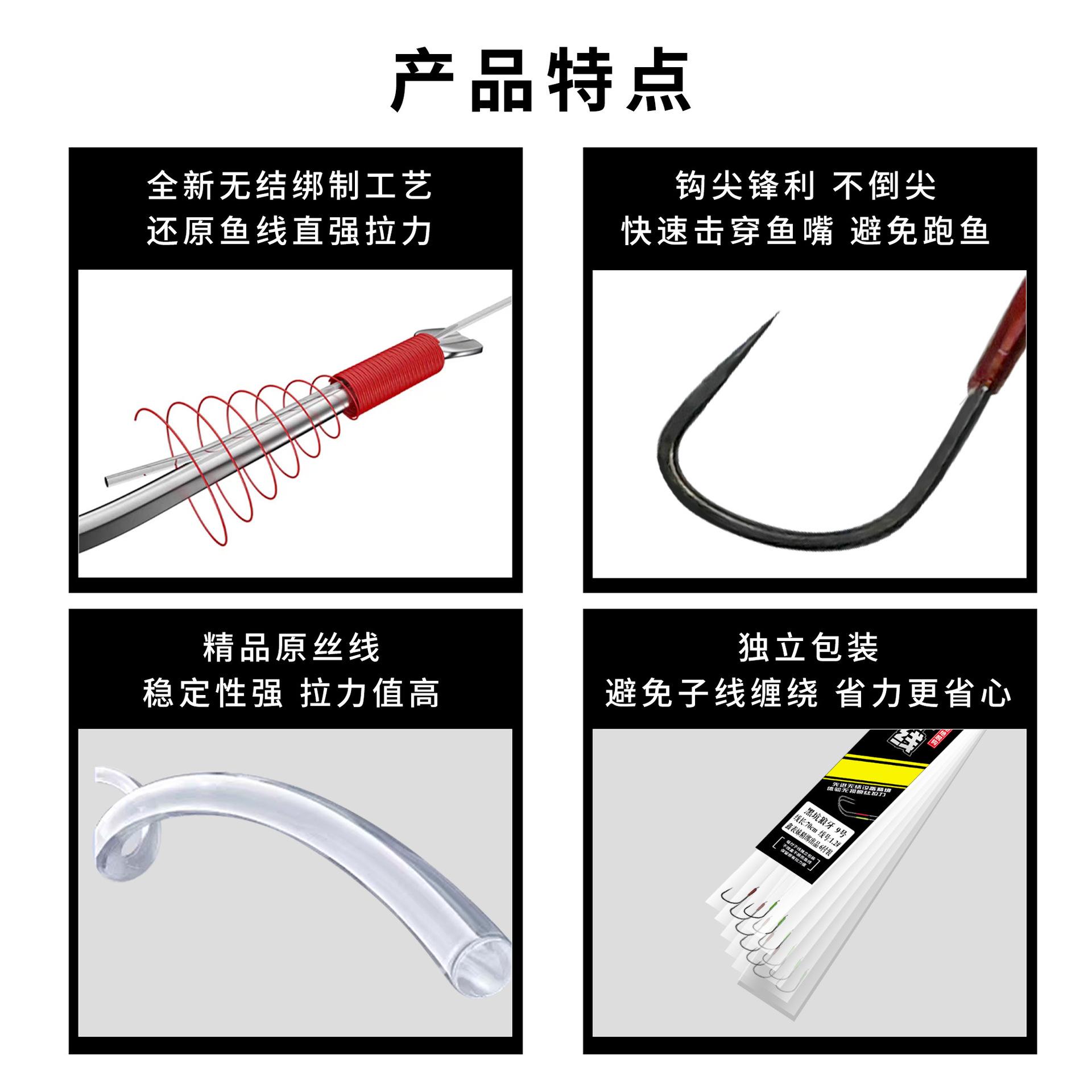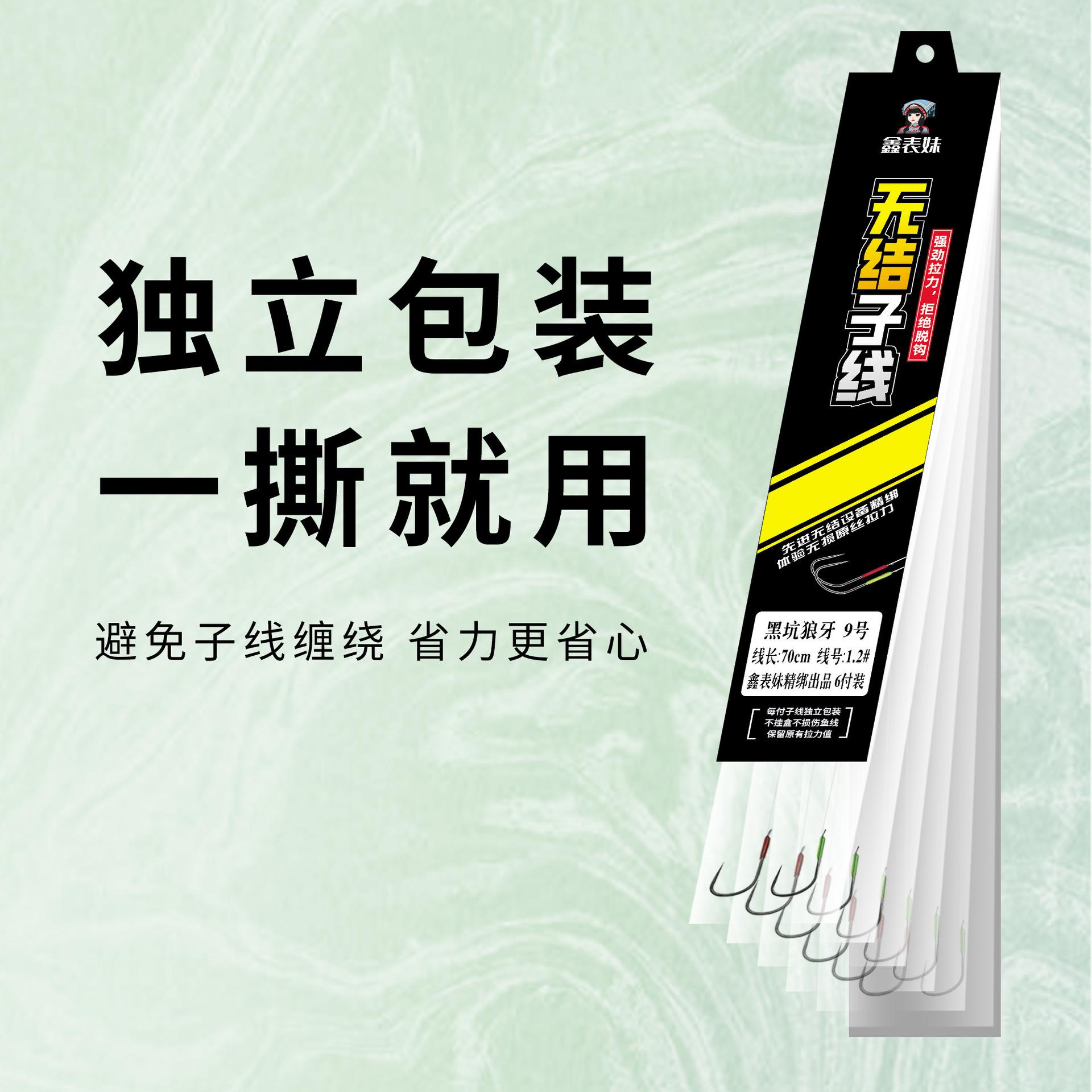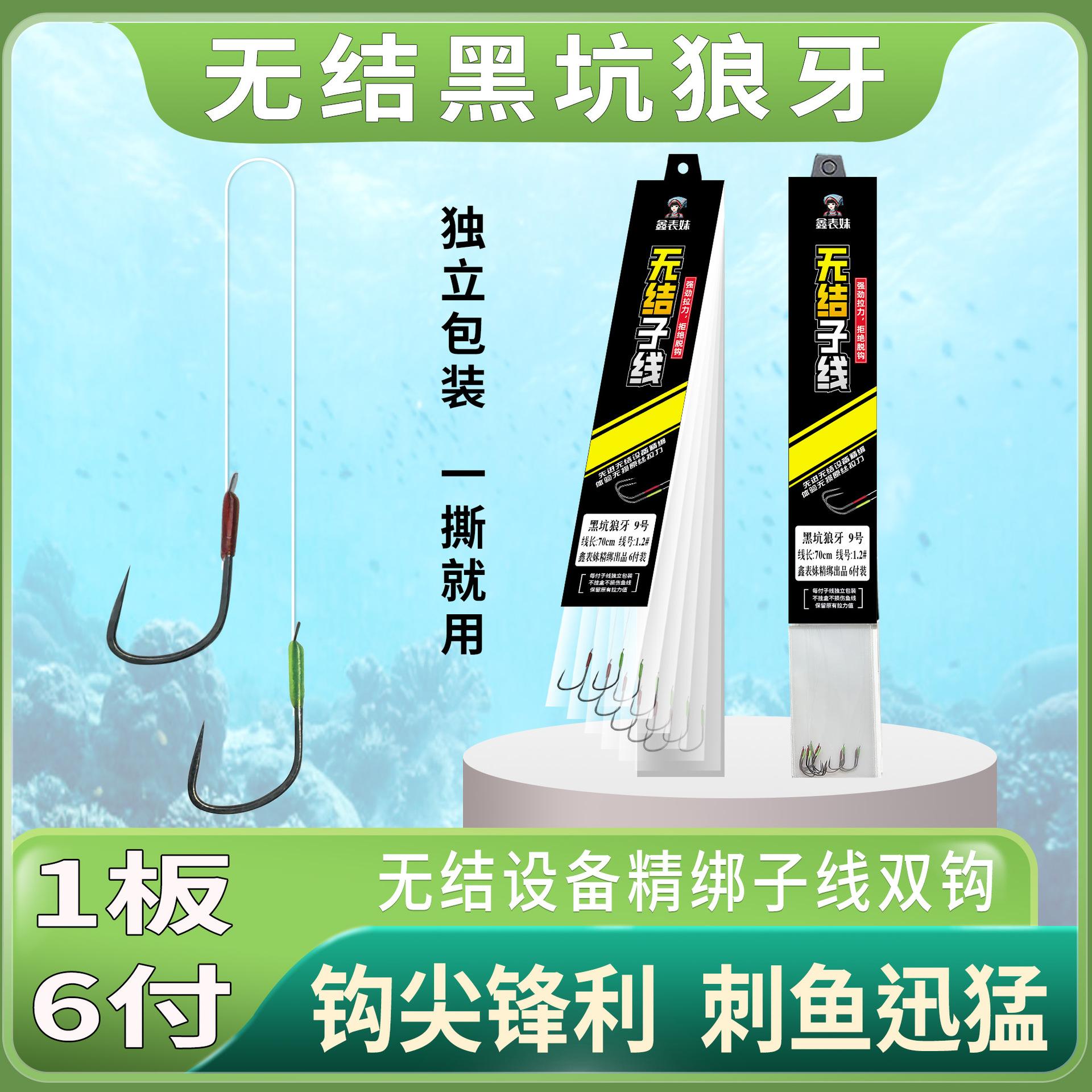 Montaje Negro Pre-Atado Sin Nudos Diente de Lobo Pit con Doble Anzuelo, 6 Juegos, Adecuado para Pesca de Carpa Crucian y Carpa, Mayorista Hecho