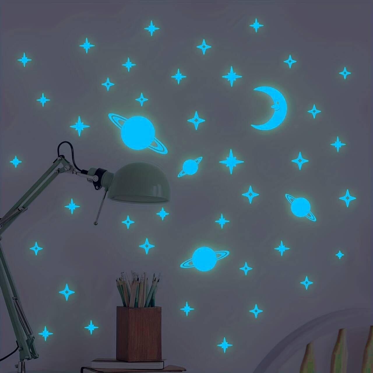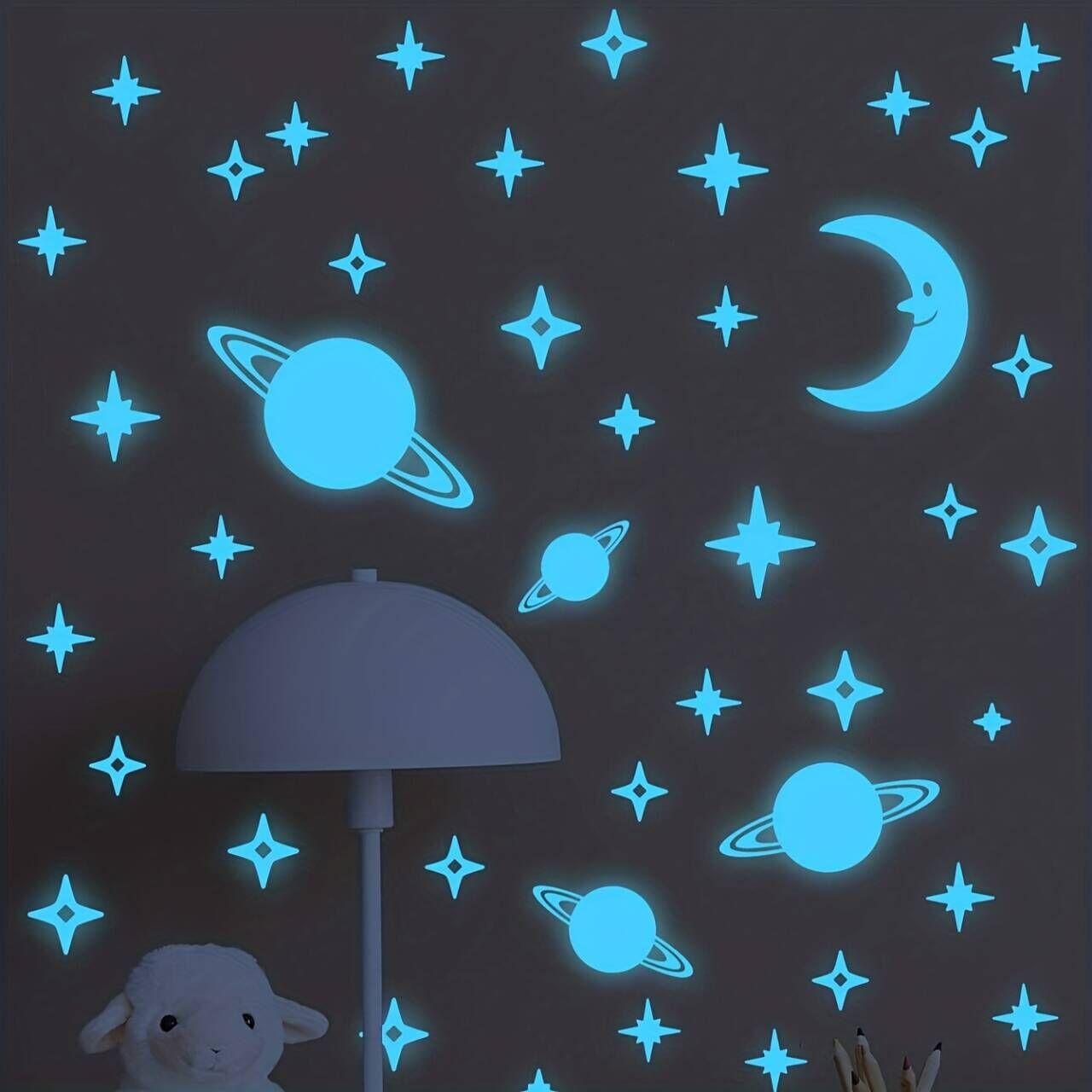 Adhesivo de pared decorativo luminoso de dibujos animados planeta luna para dormitorio infantil, embellecimiento del hogar, autoadhesivo, venta al por mayor, transfronterizo