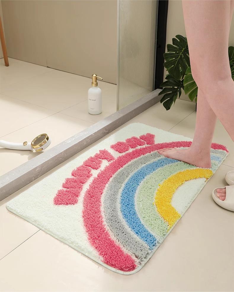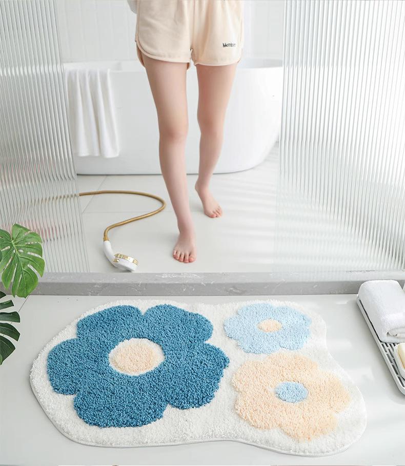 Alfombra Flocking Absorbente de Agua Antideslizante para Baño Inodoro Alfombra Hogareña de Felpa Imitación Cachemira Alfombra para Entrada de Casa Felpudo