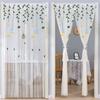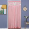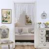 La imagen de abajo es una cortina de puerta de encaje blanco hueso con un lazo