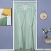 La imagen de abajo es una cortina de encaje verde claro con un lazo.