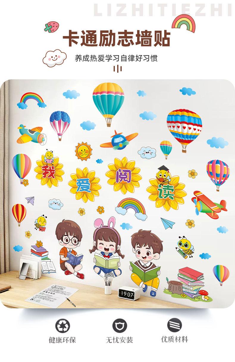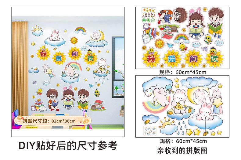 Calcomanías de Pared de Habitación de Conejo de Dibujos Animados Lindas Decoración de Pared para Aula de Lectura de Niños de Jardín de Infancia