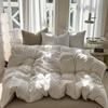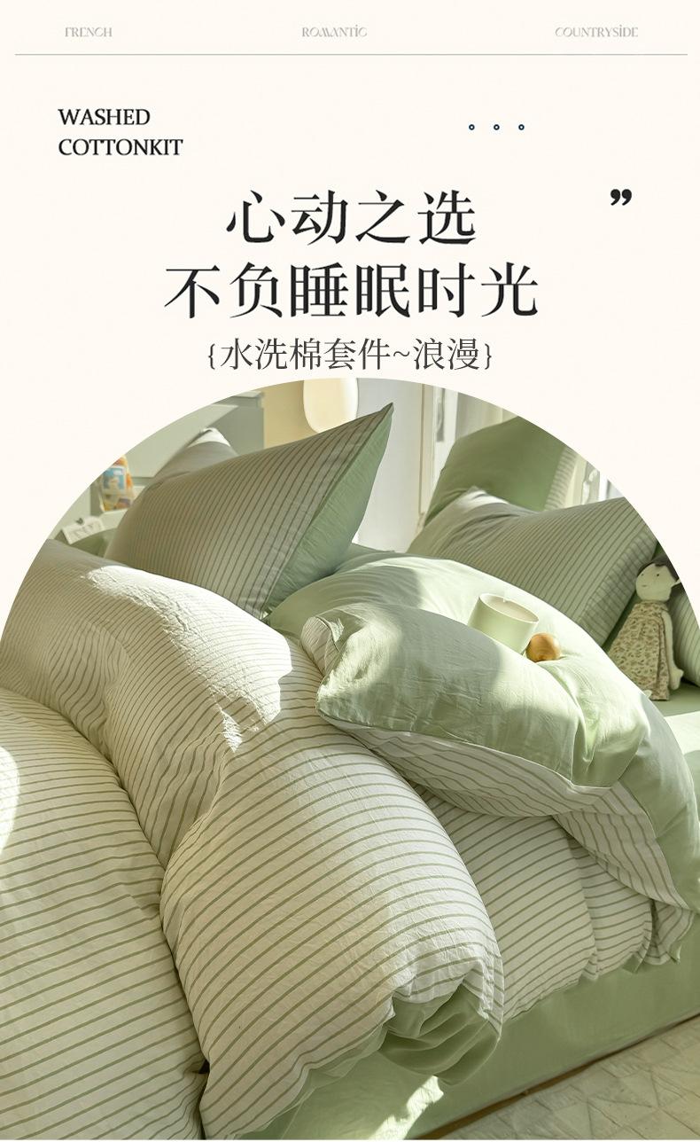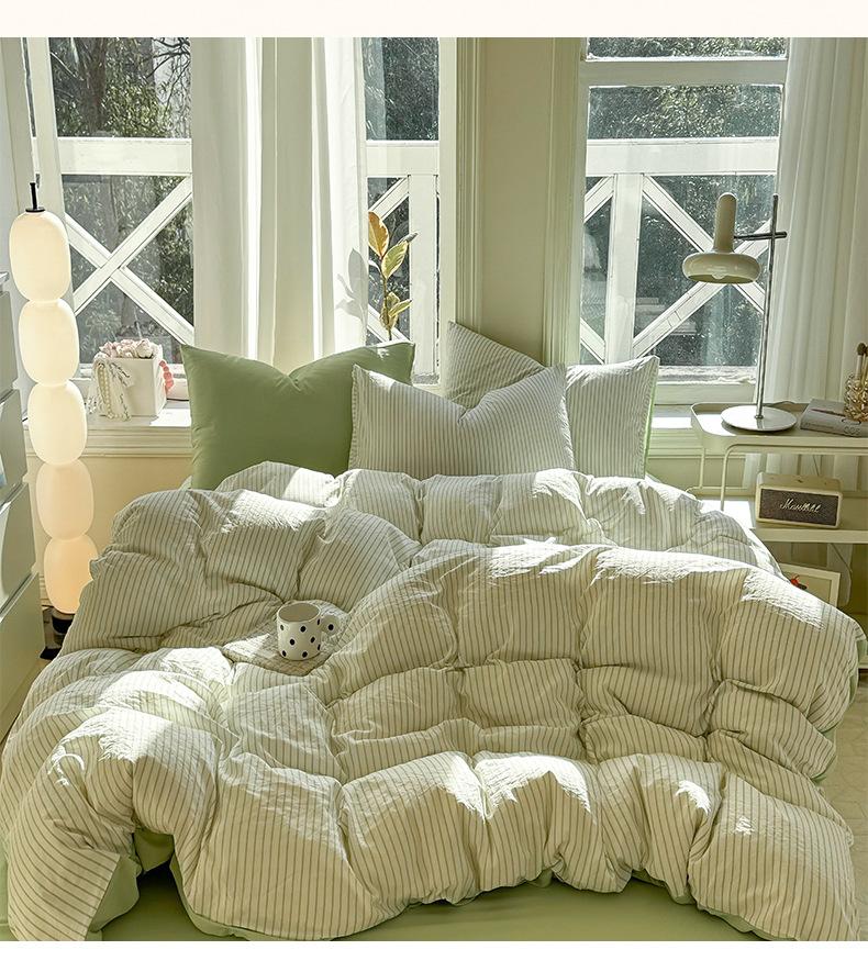 Nuevo Estilo Ins Amigable con la Piel Rayado Algodón Lavado Juego de Cama de Cuatro Piezas Cubre Sábana Edredón Dormitorio Estudiantil Juego de Cama de Tres Piezas 4