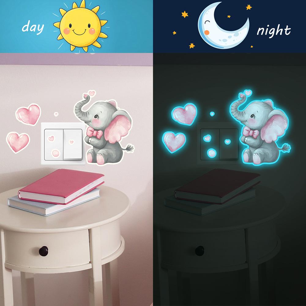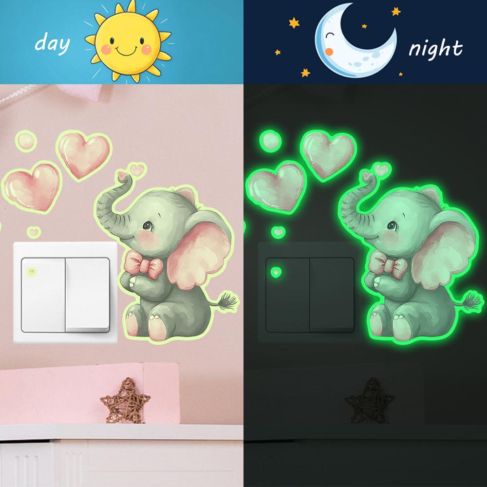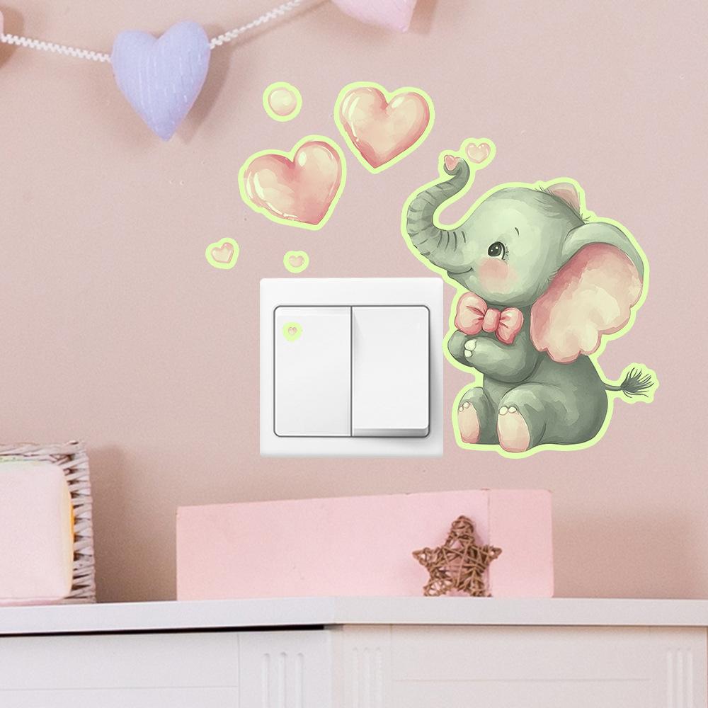 Nuevo Luminoso Mg-Yk028 Dibujo Animado Lindo Elefante y Corazón Fondo Adhesivo Decorativo para Interruptor de Pared Autoadhesivo