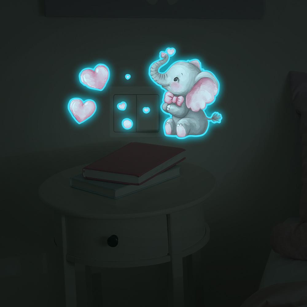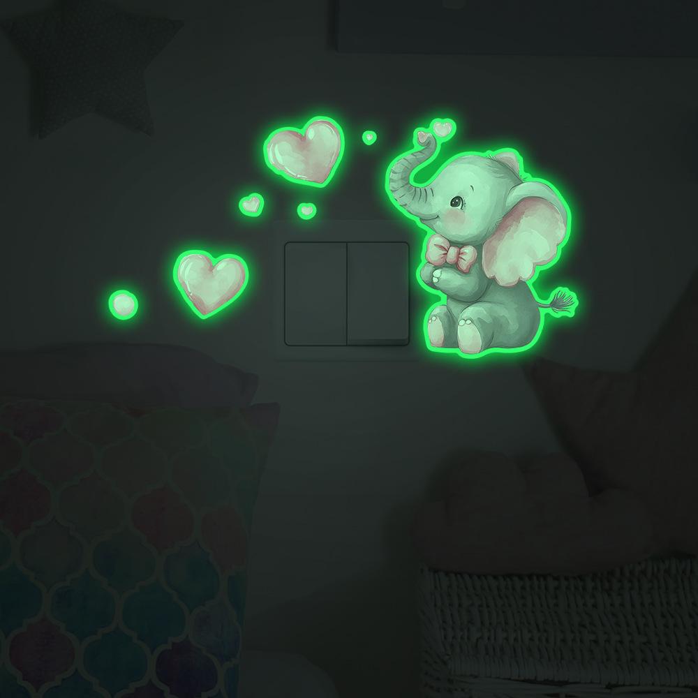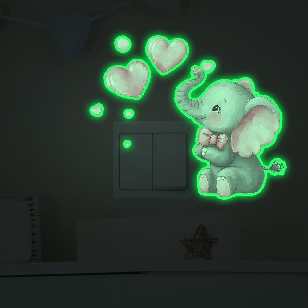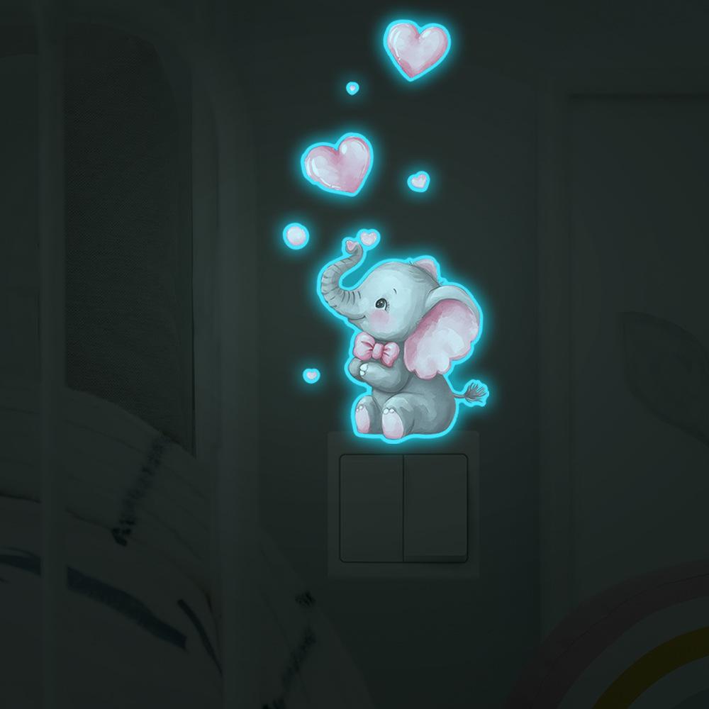 Nuevo Luminoso Mg-Yk028 Dibujo Animado Lindo Elefante y Corazón Fondo Adhesivo Decorativo para Interruptor de Pared Autoadhesivo