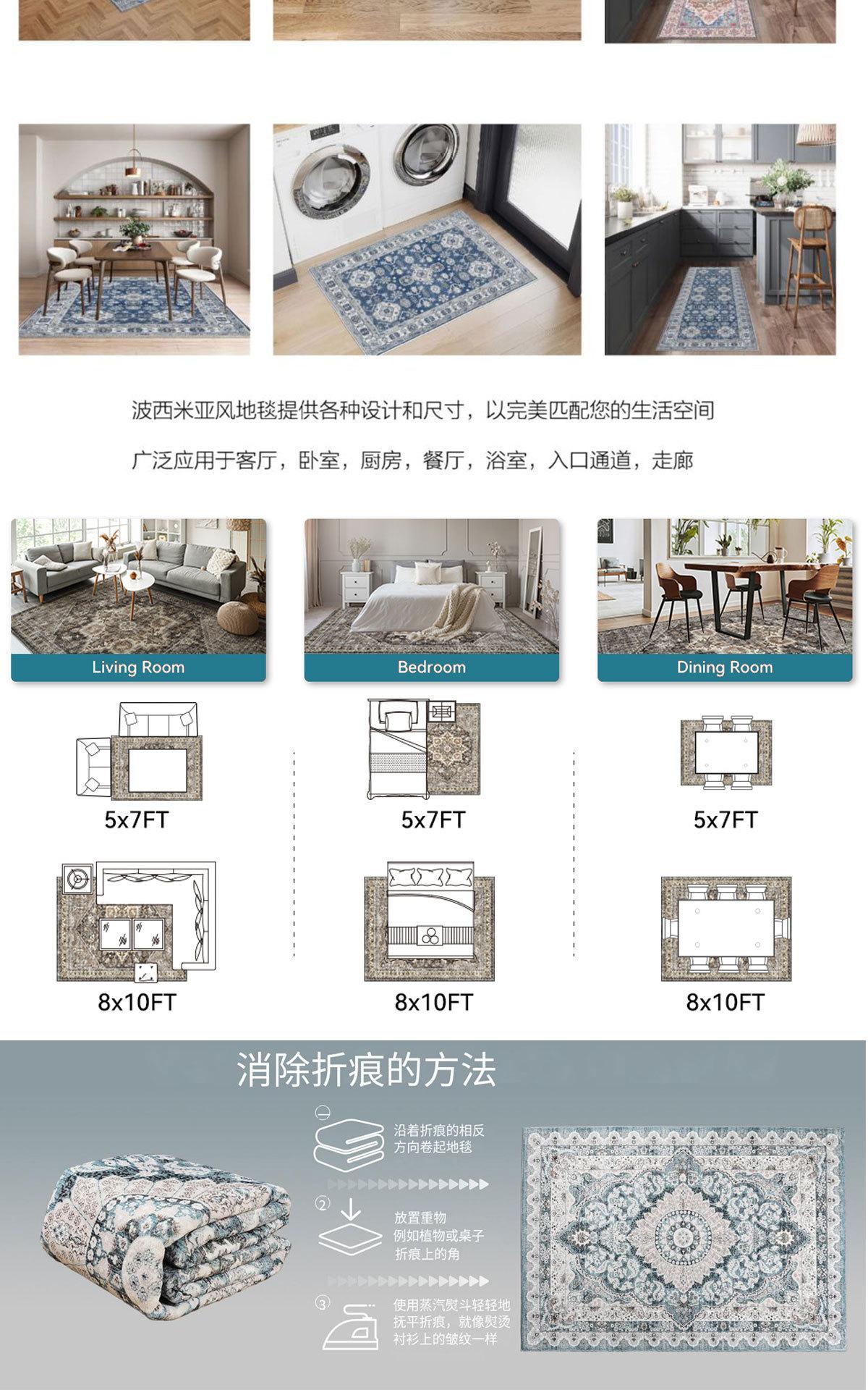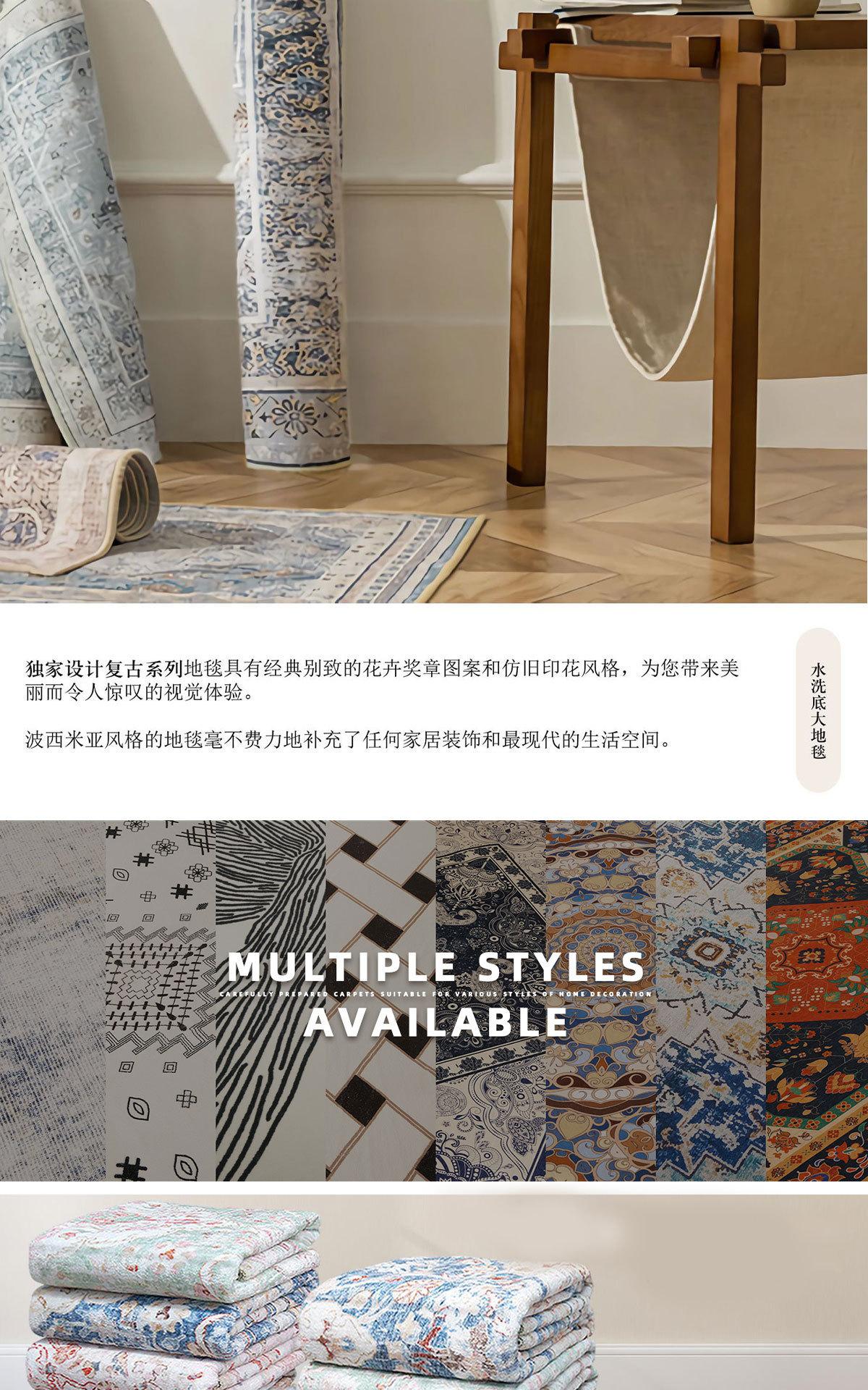 Alfombra Lavable Transfronteriza, Mesa de Centro para Sala de Estar Estilo Bohemio, Plegable, Imitación Cachemira, Resistente a las Manchas, Antideslizante, Lujo Ligero