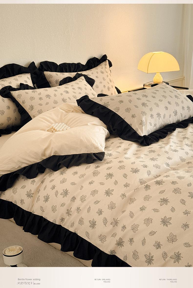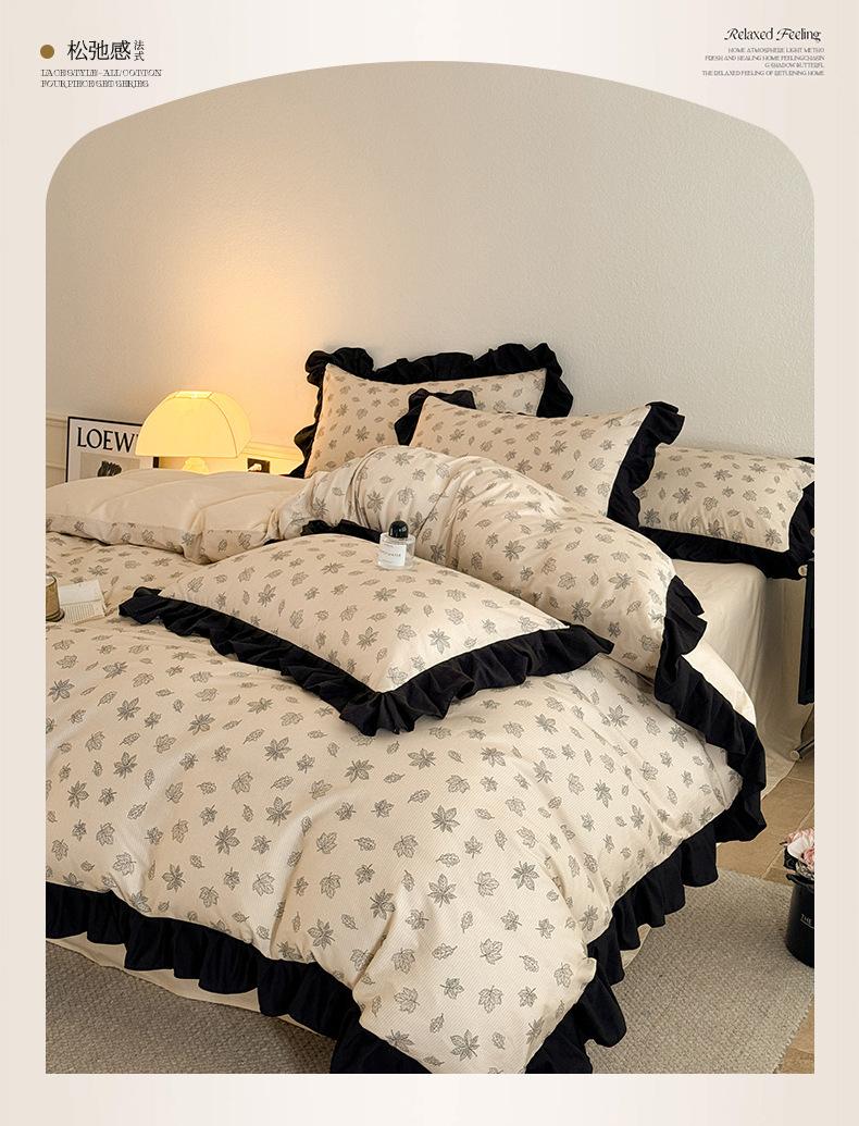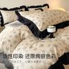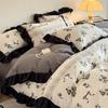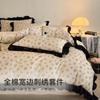 Juego de cuatro piezas de algodón puro de alta gama francés 100% Algodón Sábanas, Sábanas Ajustables, Fundas Nórdicas de Encaje, Ropa de Cama Estilo Pastoral 4
