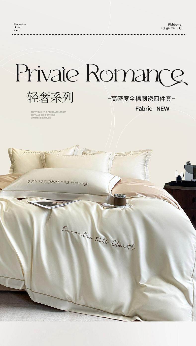 Lujo Ligero y de Alta Gama Juego de Cama de Algodón Puro de Cuatro Piezas 2025 Nuevo Funda Nórdica de Algodón Cama Sábanas Cama Dormitorio Sábanas Juego de Tres Piezas