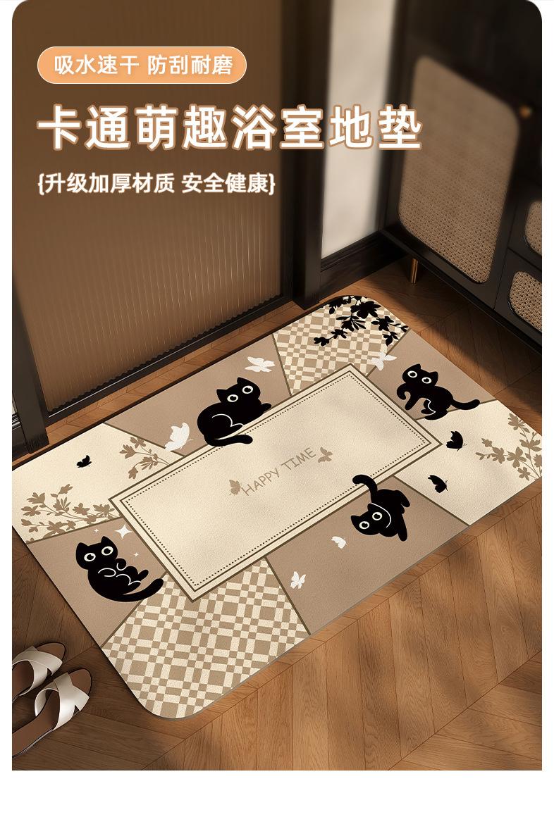 Alfombra de Baño Estilo Dibujo Animado Retro Francés Alfombra Absorbente de Barro Diatomeo Alfombra de Pie Antideslizante para Baño Inodoro Alfombra Lavable