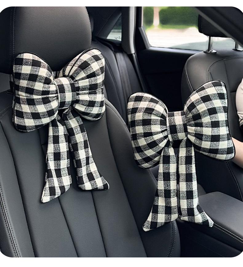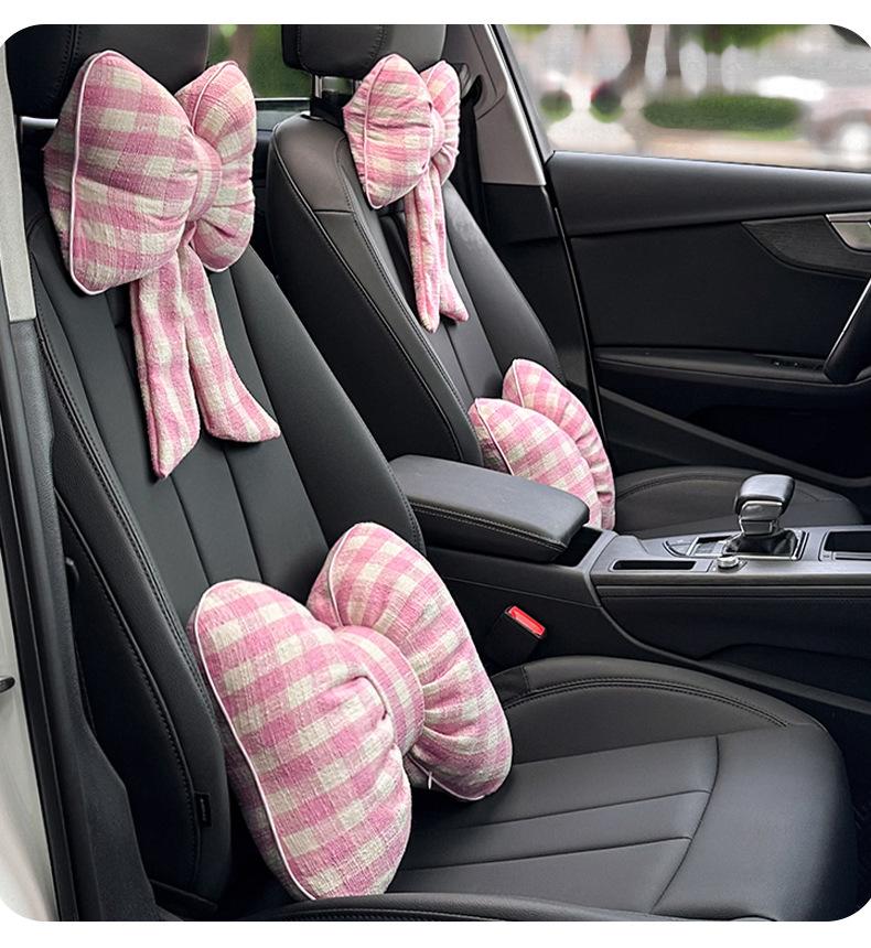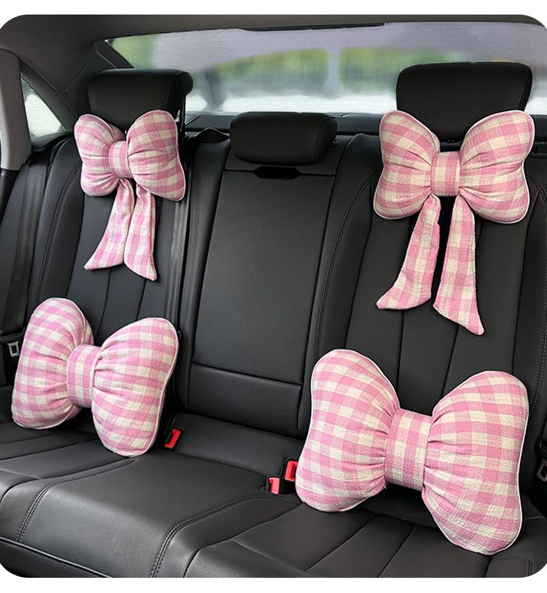Plaid bow ribbon waistrest pink