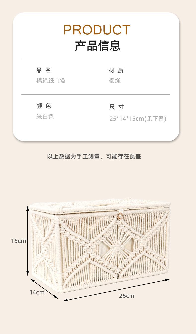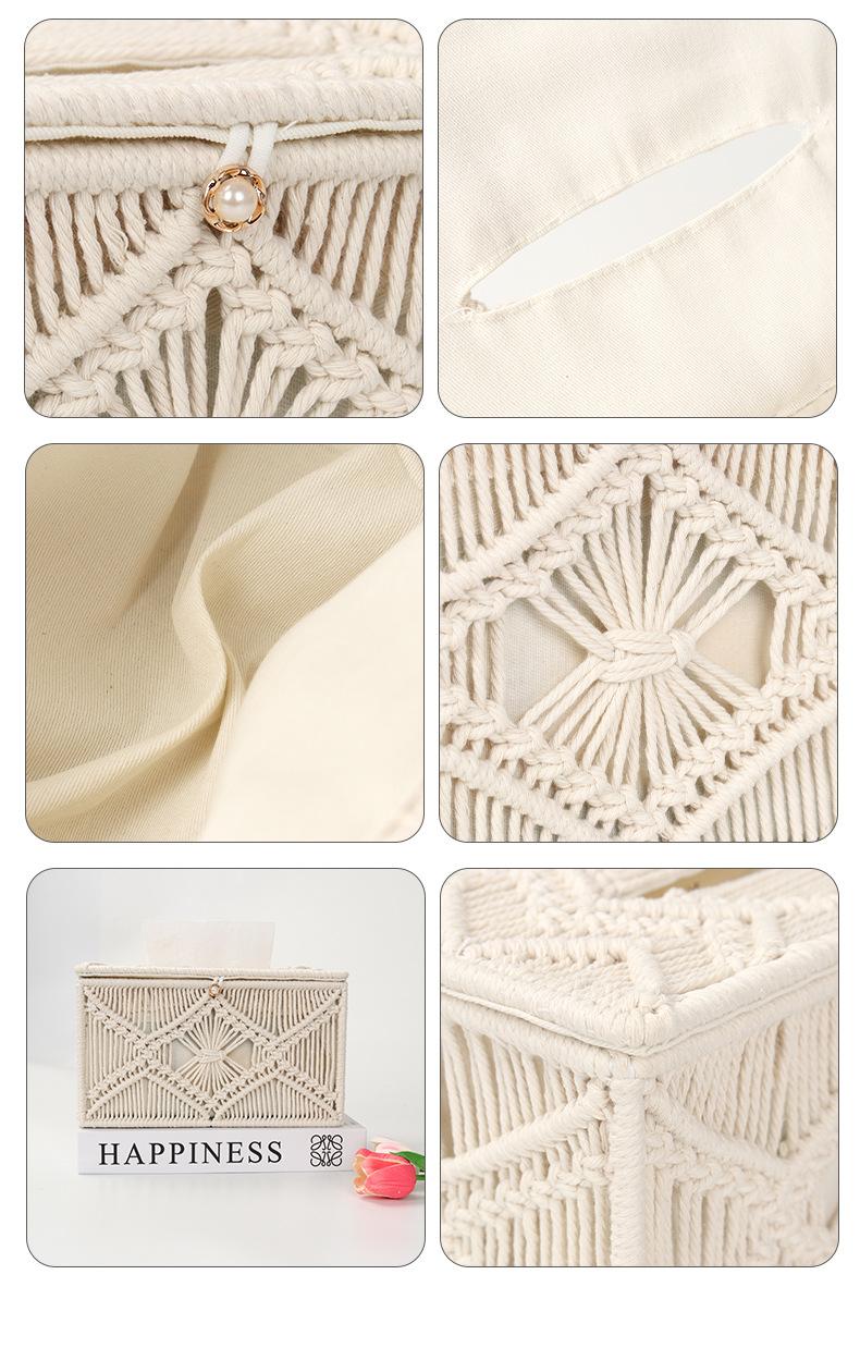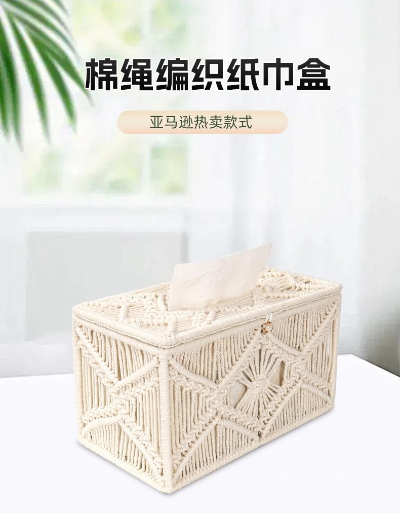 Caja de pañuelos tejida a mano transfronteriza Caja de almacenamiento diario para el hogar con cuerda de algodón de estilo escandinavo creativo Caja de pañuelos